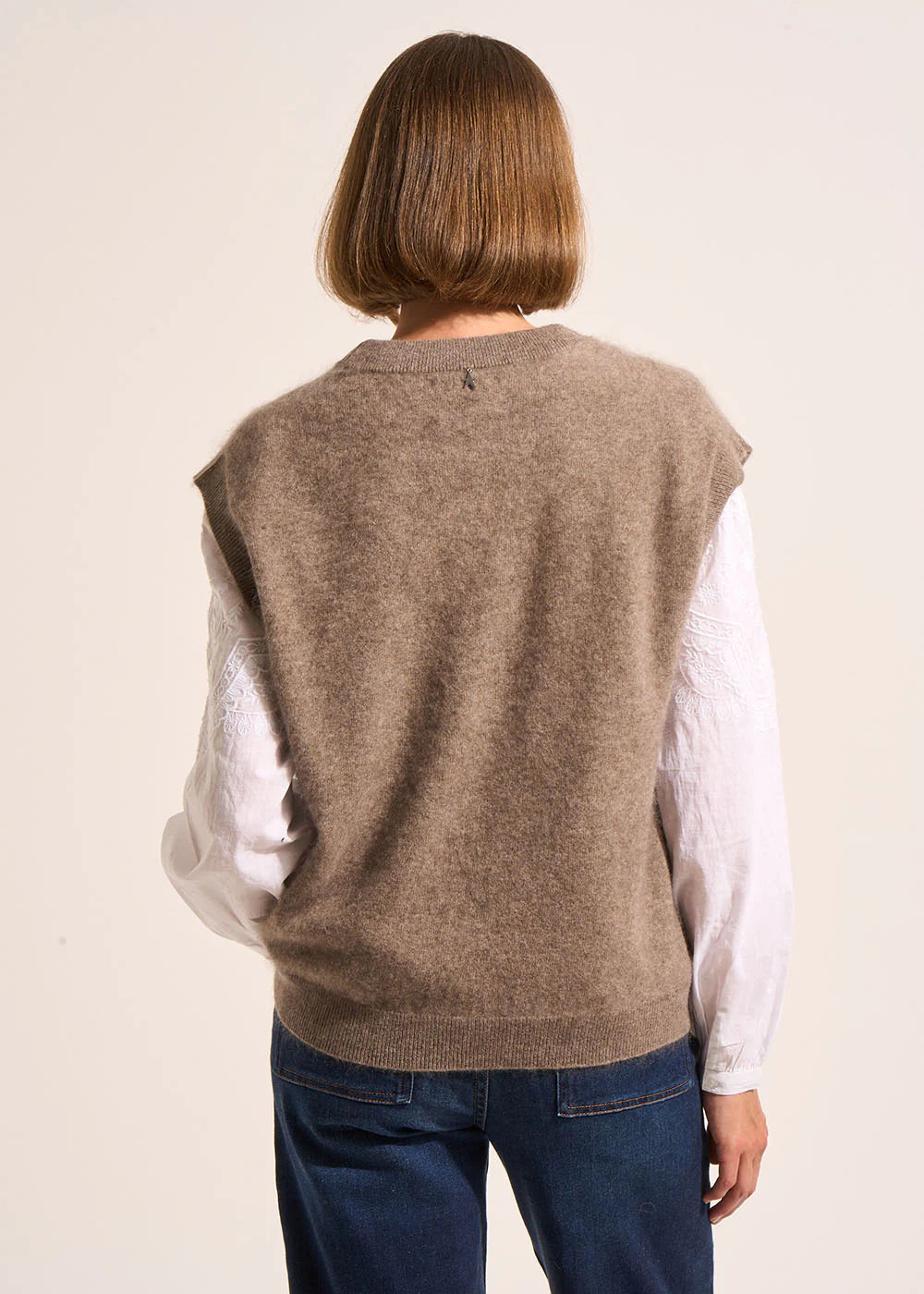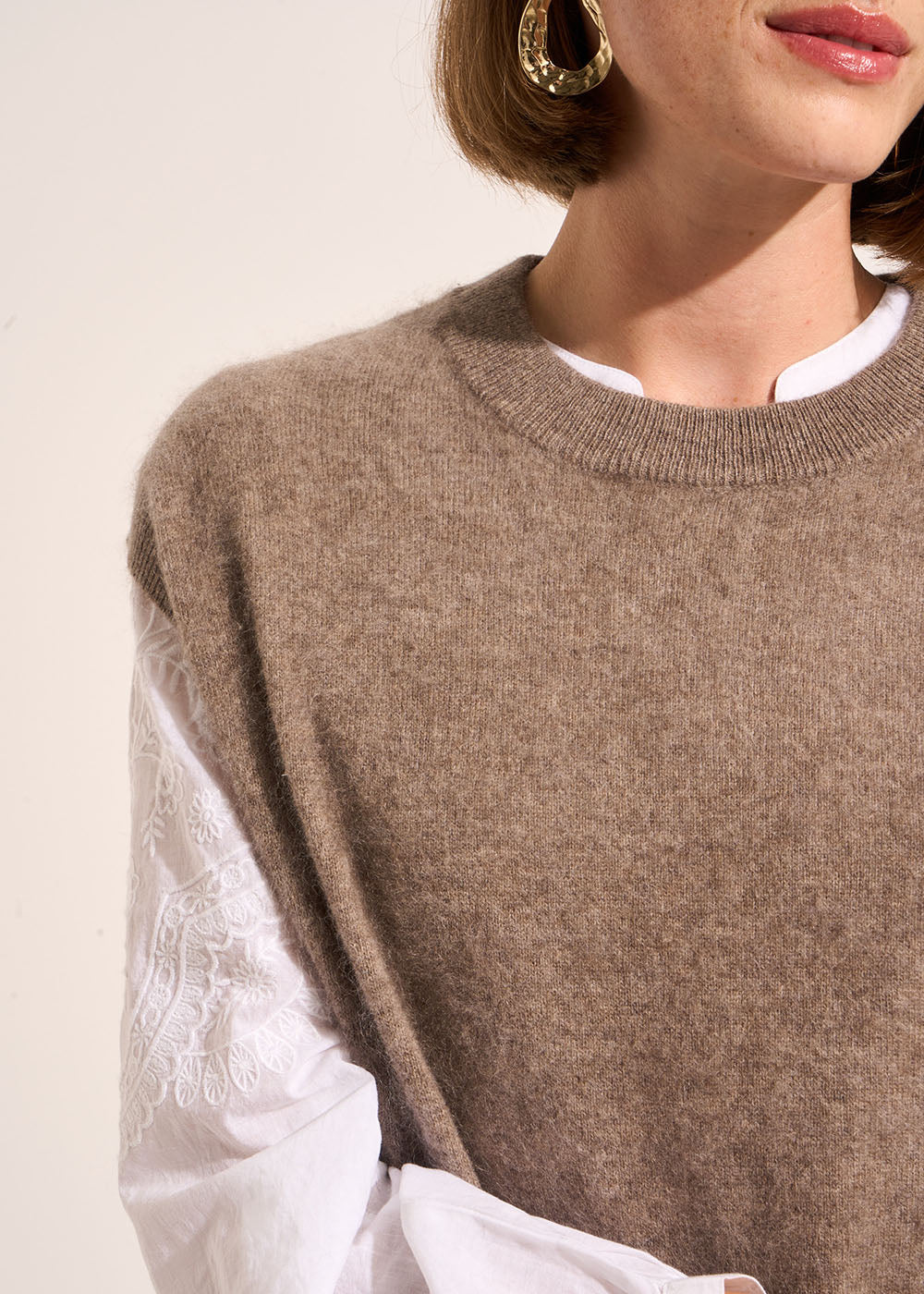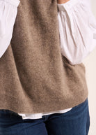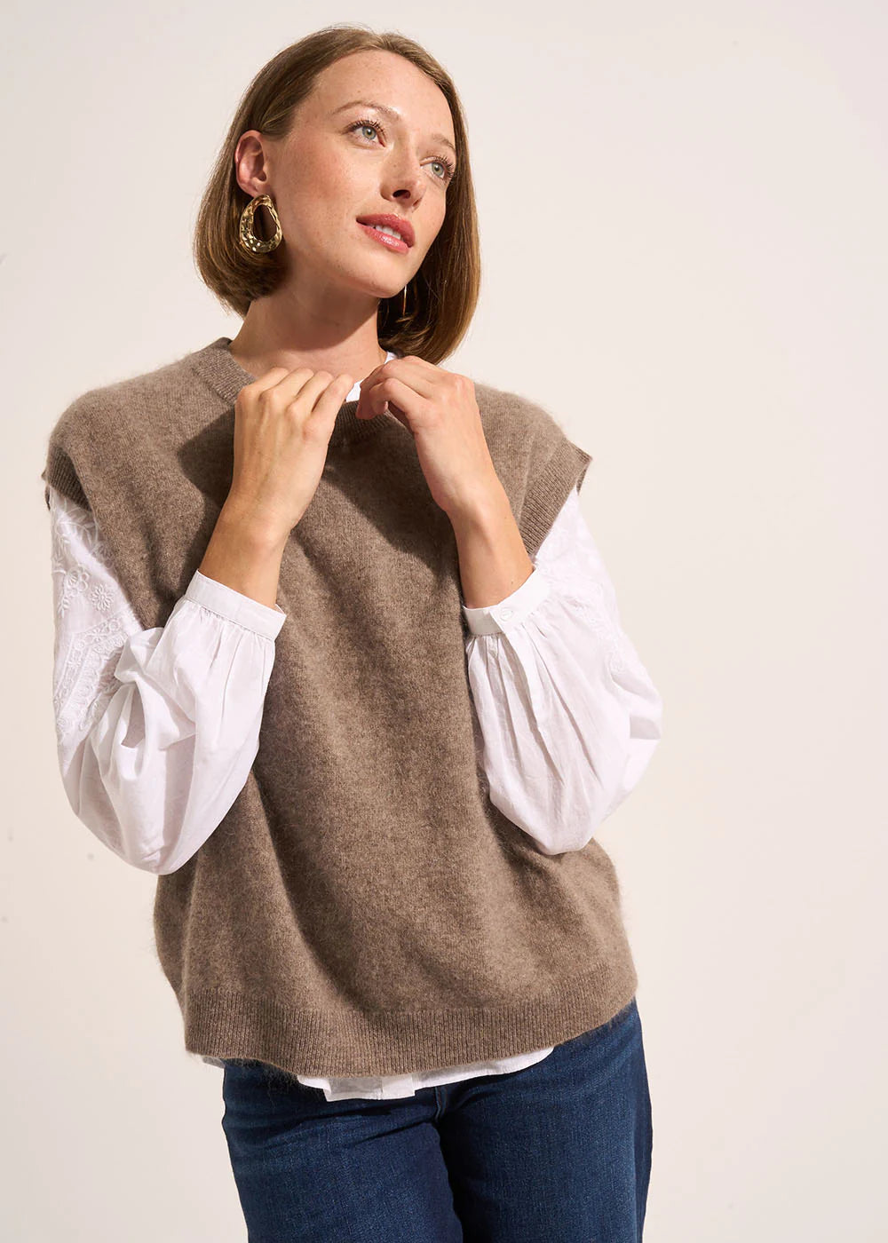 Layer up in cosy sophistication with this sleeveless jumper. Crafted from a luxurious wool and cashmere blend, it offers a soft touch and natural warmth, perfect for autumn and winter styling. Designed with a round neckline and a relaxed, loose fit, it’s ideal for layering over blouses, shirts, or lightweight knits.
