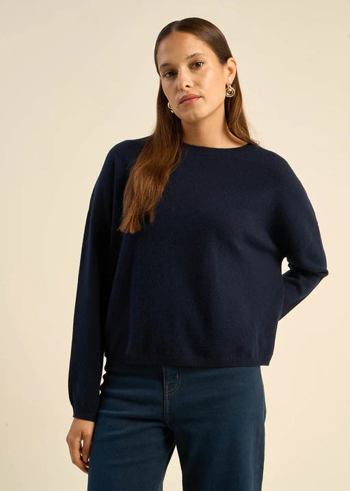 This beautiful cashmere sweater will become your go to for casual days. The bateau neckline and long slim-fit sleeves add a touch of elegance to this classic style. The boxy fit complements the feminine shape, making it perfect for any occasion, simply pair with your favourite pair of wide-leg jeans and Victoria trainers.