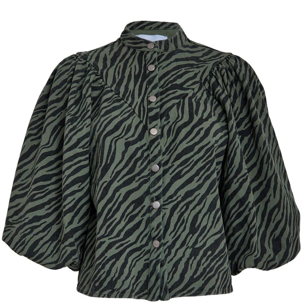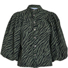 Statement in both shape and style, this jacket inspired shirt is a must have for the trend following fashion lovers. With an all over animal print and puffed sleeves, this shirt brings fresh style to your look with ease, great for throwing on with your jeans or even a satin bias cut skirt. The button up front and detailed yoke keep this statement top looking feminine, perfect for dressing up or down this winter.