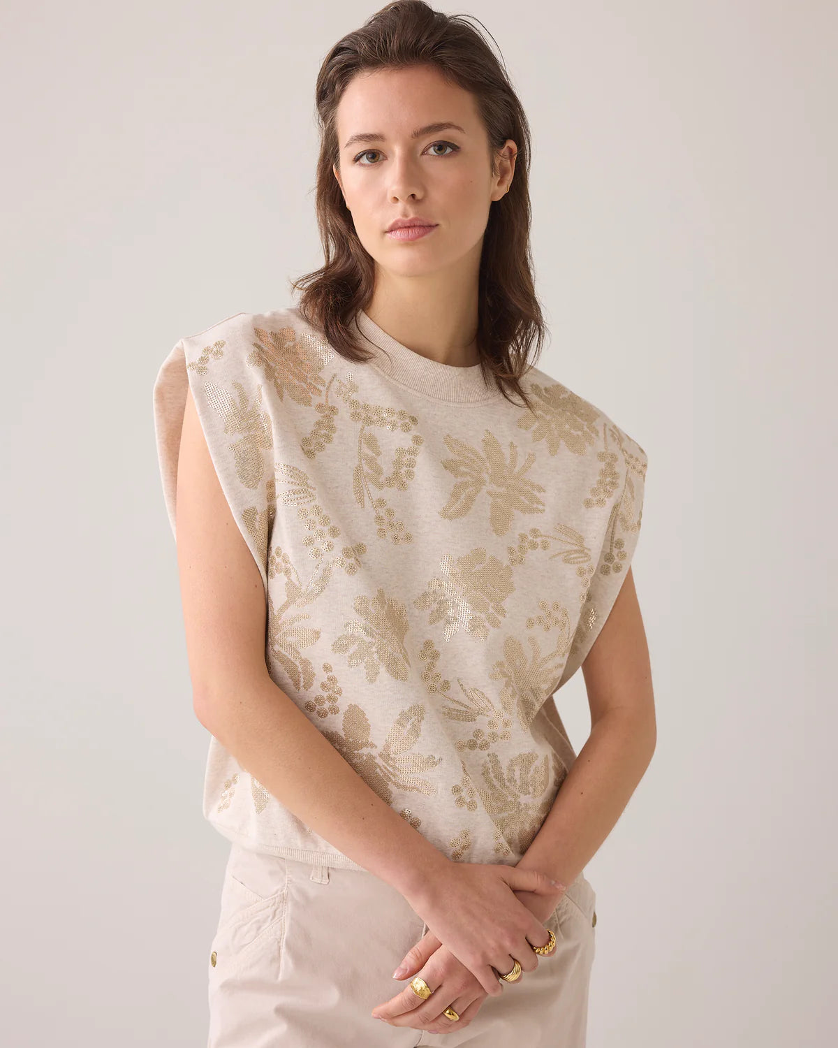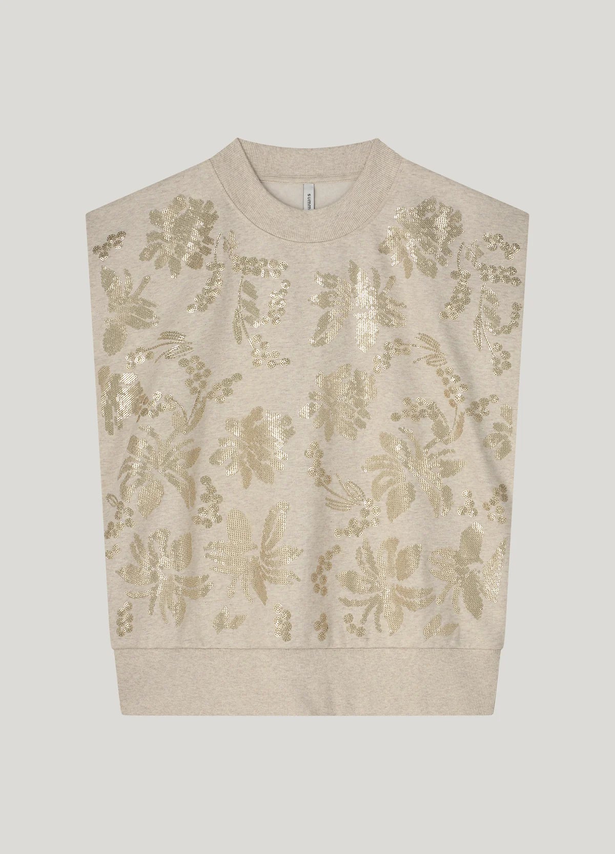 Sequin Sleeveless Sweatshirt - Pebble Beige