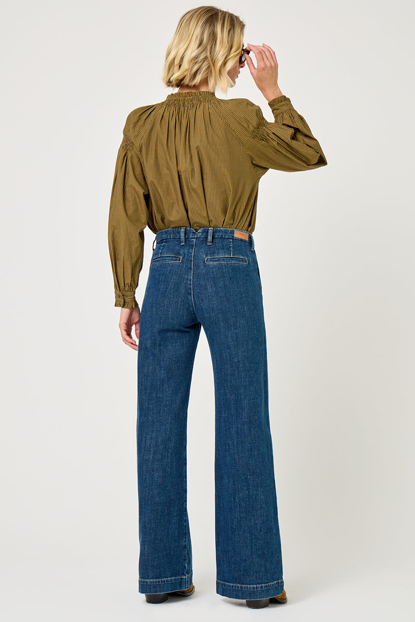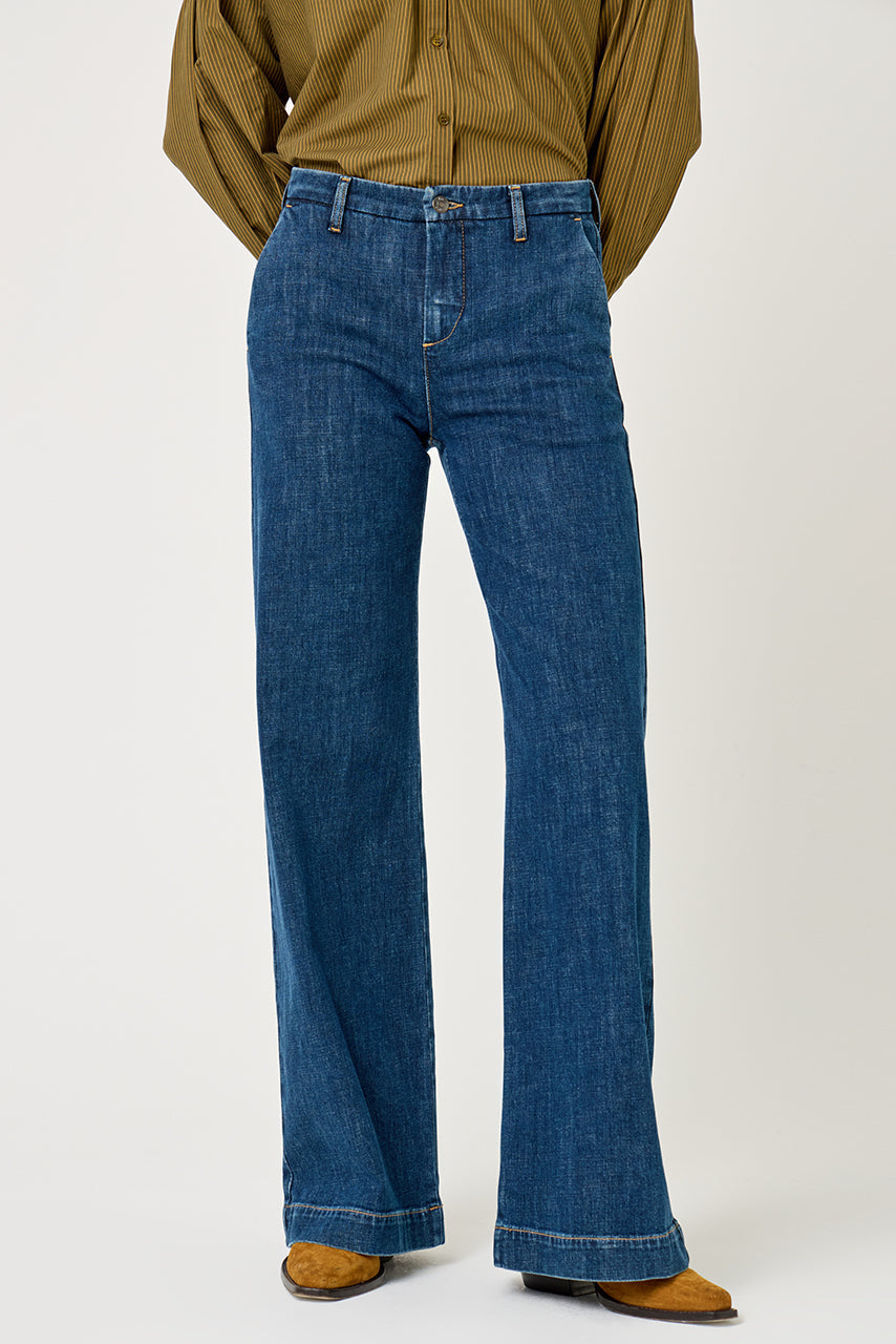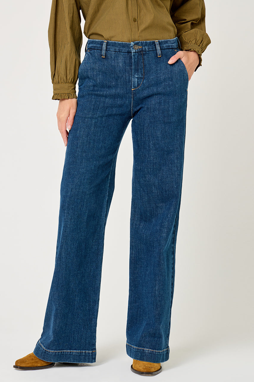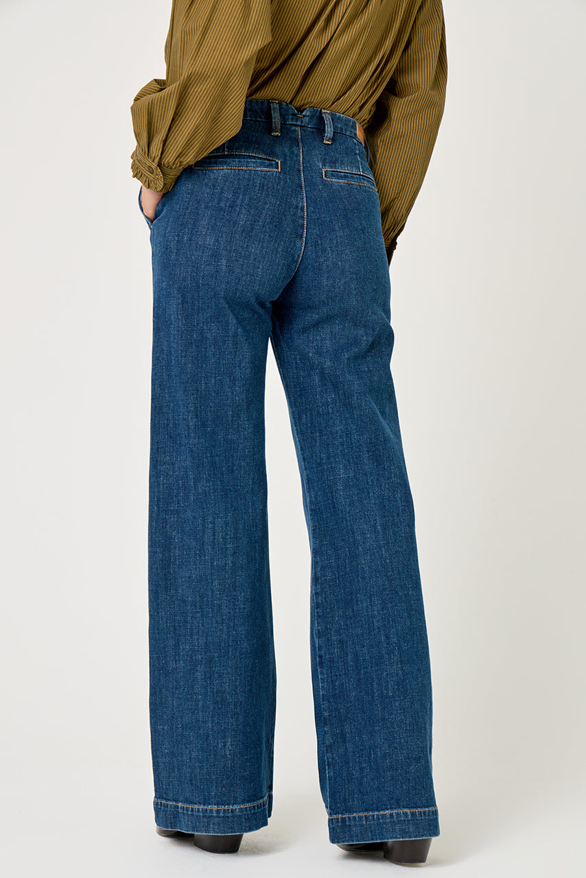 The Leika jeans are a classic here at Doodie Stark, year after year, colour after colour, this style of jeans flies off the rails, and for a good reason too! In a beautiful soft cotton fabric, these wide leg jeans are a staple for all year wear and a true transitional piece. The classic closure with a branded button and hidden zip keeps these jeans timeless.