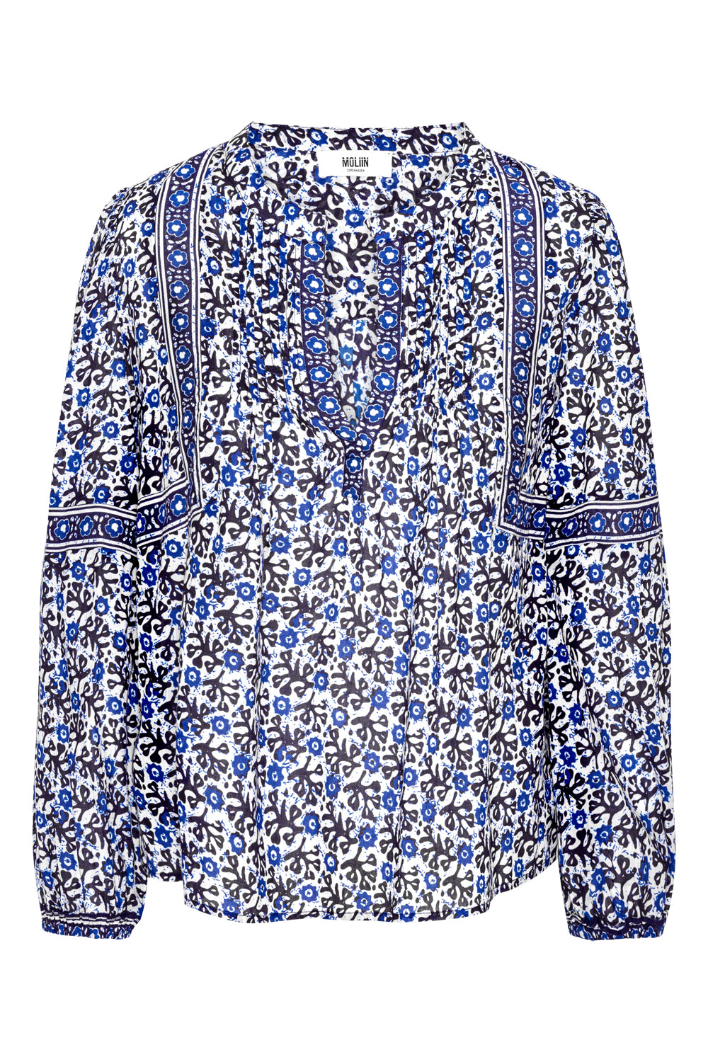 This floral blouse is beautifully feminine with an round neckline and v shaped opening, perfect for showing off a pendant necklace. With thin pleated panels and broderie details, this shirt is inspired by the Spring, and looks effortless with a pair of ecru jeans.