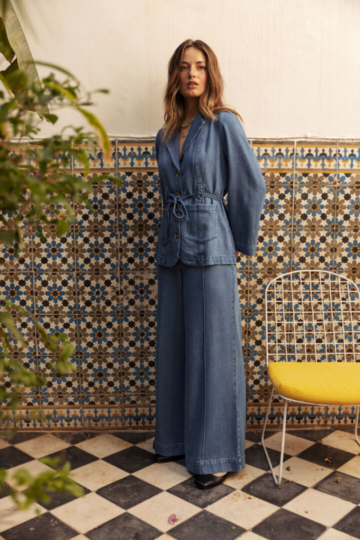 These super soft denim pants are perfect for days where its too hot to throw on your jeans. With flattering patch pocket details and a seam running down the middle of each leg, these stylish pants look amazing with a crisp cotton blouse and your favourite sandals.