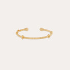 A vibrant tribute to bohemian spirit and handcrafted charm — the Zanzifull Bracelet is a slender bangle in fine gold‑plated metal, entirely wrapped in coloured threads for a lively, textured effect. The bangle is finished with delicate golden beads at its ends, making it both playful and elegant. HAYGEN+2M