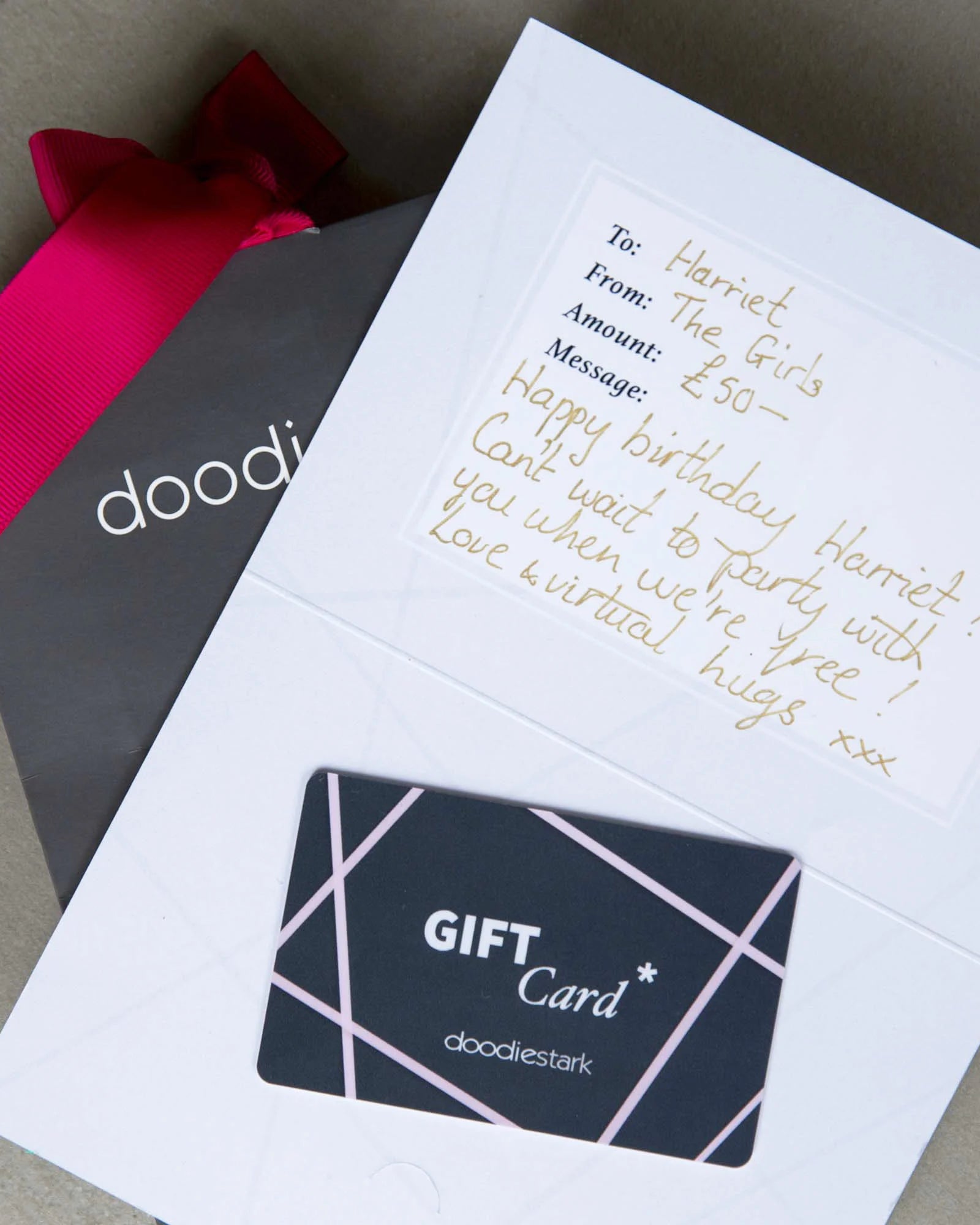 - a more traditional plastic gift card which can be physically given or posted to the recipient. This product can be used in store but NOT online.