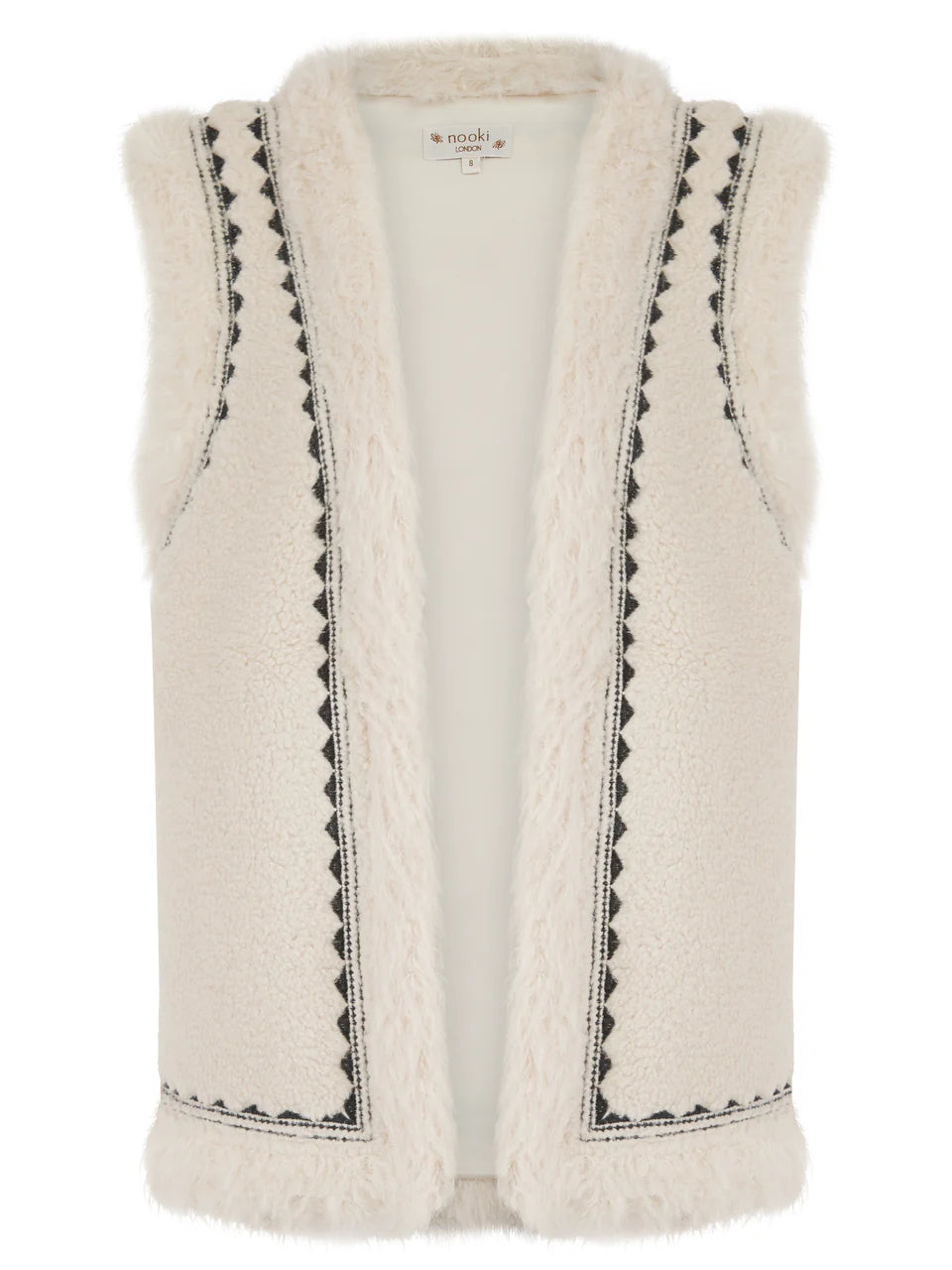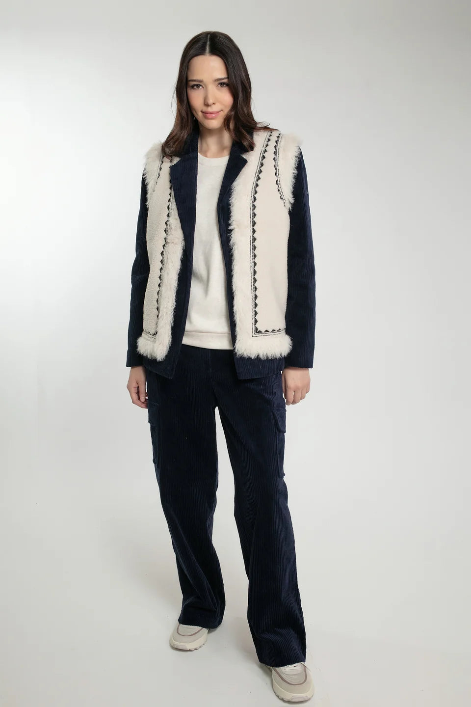 This boho inspired winter gilet is perfect for layering for the cold weather. In a sleeveless style with embroidery details and faux fur trim, this gilet can be layered over dresses, knits and tee's for a winter chic look