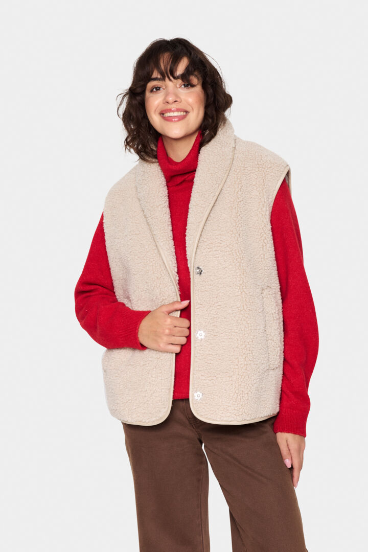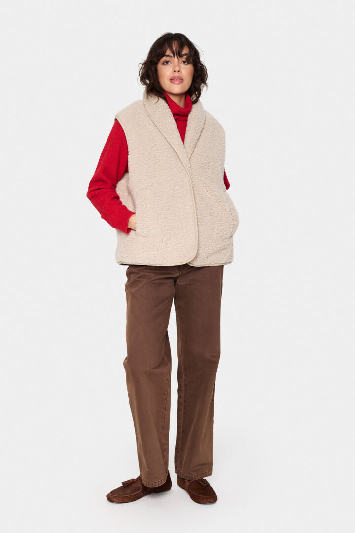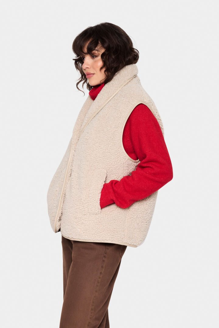 With its slouch collar and waistcoat style, this vest is both stylish and cosy. Stay warm and chic with the added benefit of functional pockets. Perfect for any fashion-forward individual this winter.