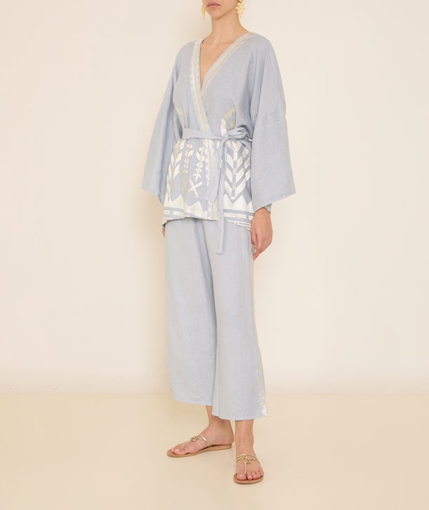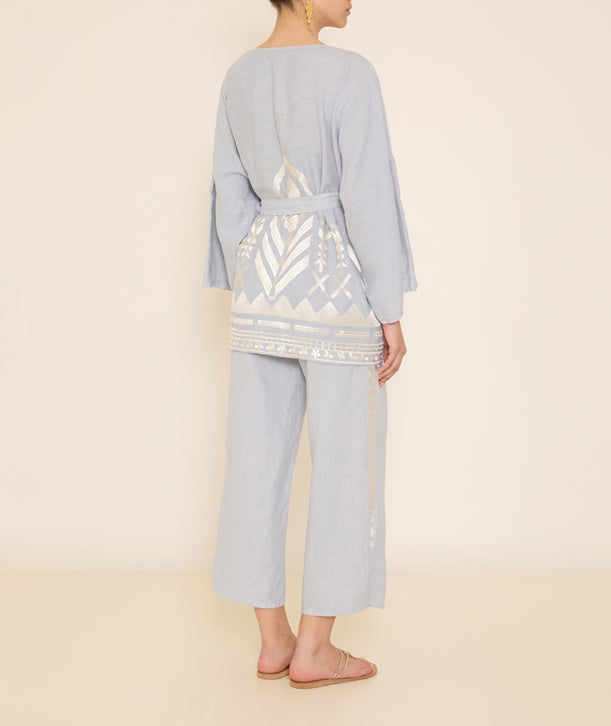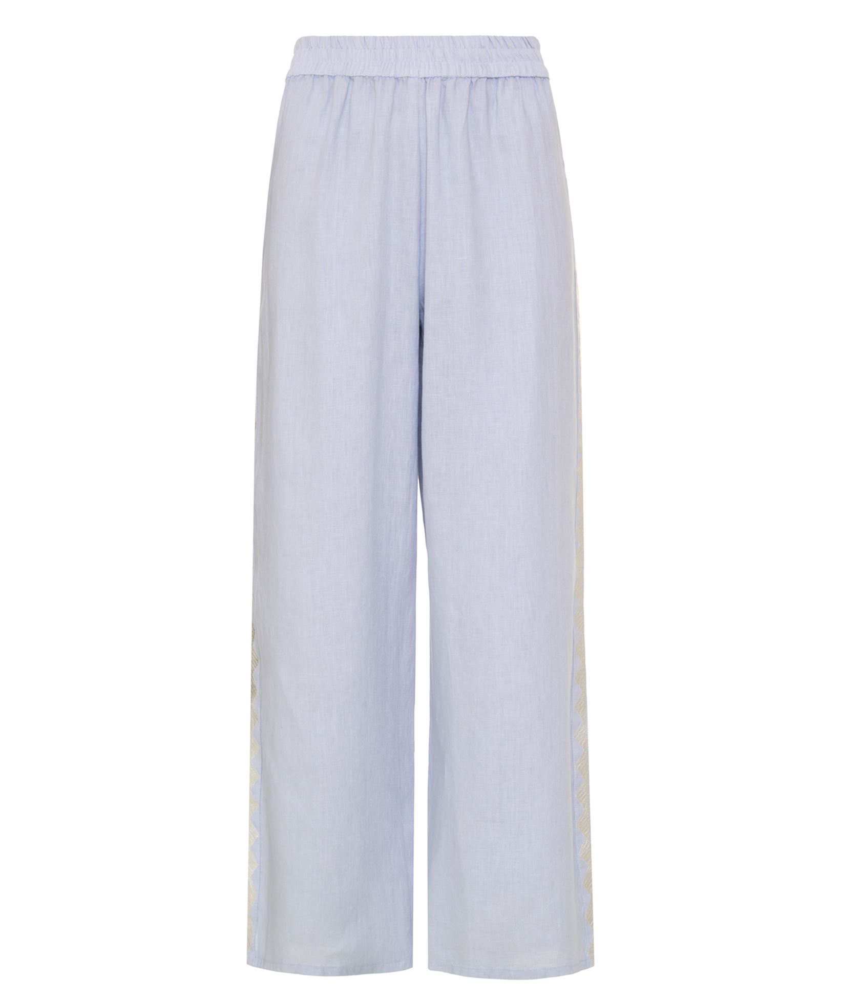 These trousers are a must have for the summer months. In a light grey colour, these simple linen trousers go with anything from a white feminine blouse to a casual short sleeved tee. With embroider details up the sides, these are certainly not your ordinary linen trousers.