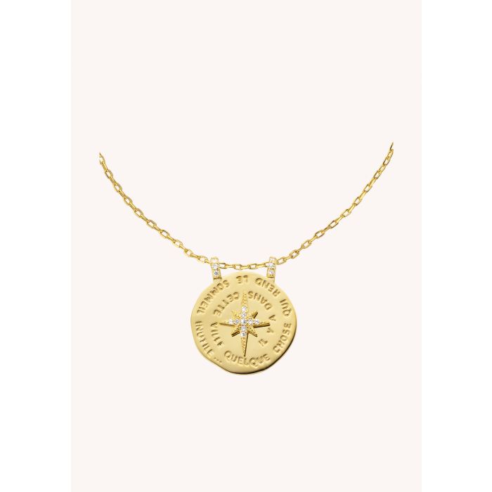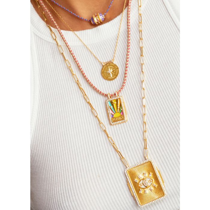 This necklace is the perfect addition to a statement necklace stack. With a round pendant featuring the 'declaration', this beautiful necklace is sure to come with compliments.