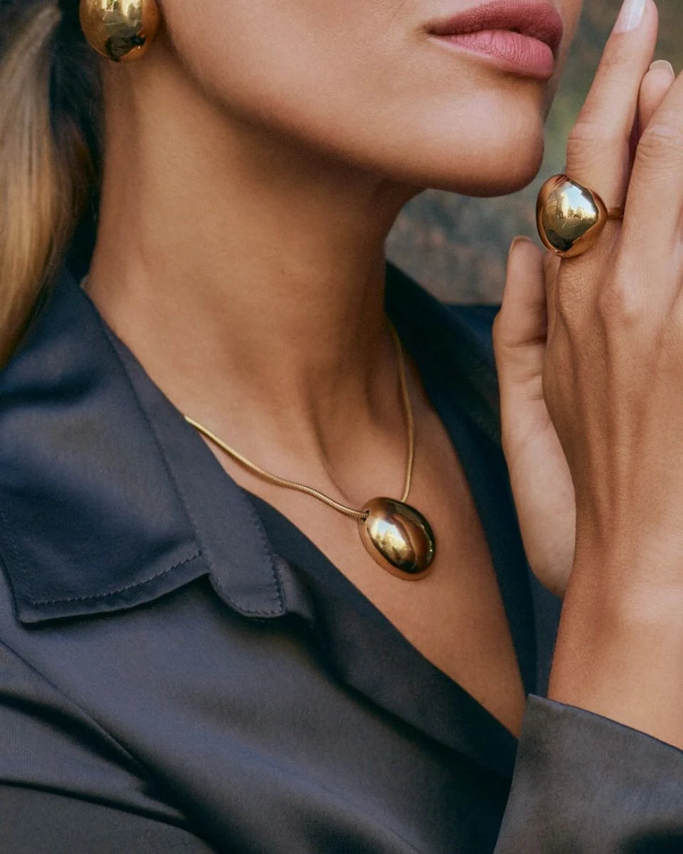 This necklace is timeless, certain to be an every day favourite and a real showstopper. In a dainty chain style, this necklace features a large pendant for a statement finish. The snake chain gives this necklace a unique touch.
