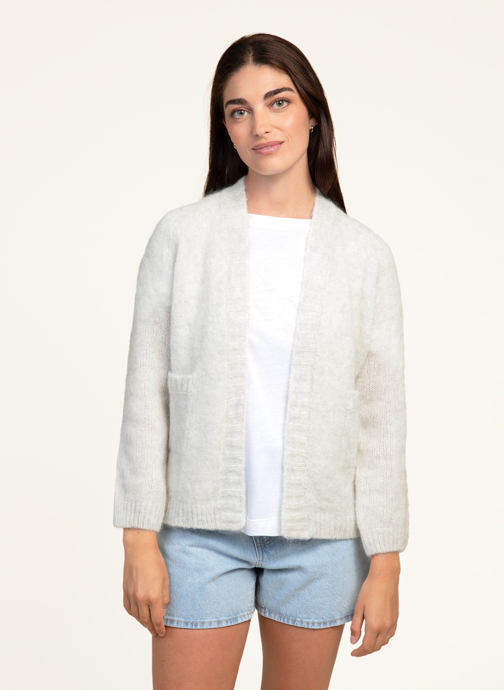 Effortlessly layered elegance meets everyday comfort in this light grey cardigan. The Bruneti Cardi drapes beautifully over any outfit, offering that perfect balance of relaxed sophistication. Soft to the touch with a timeless neutral tone, it's your go-to piece for transitional dressing—whether you're heading to the office or settling in for the weekend. A wardrobe essential that works as hard as you do.