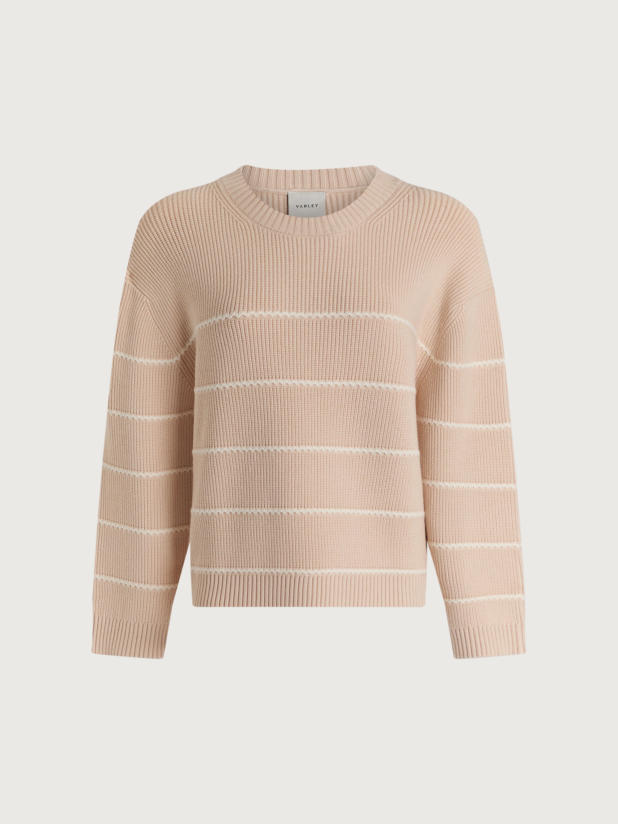 Meryl is an easy knit that elevates a relaxed outfit. Crafted from a soft knitted fabric and featuring a contrast embroidery stitch stripe, this sweater has a timeless crewneck and styles well with a wide-leg pant.
