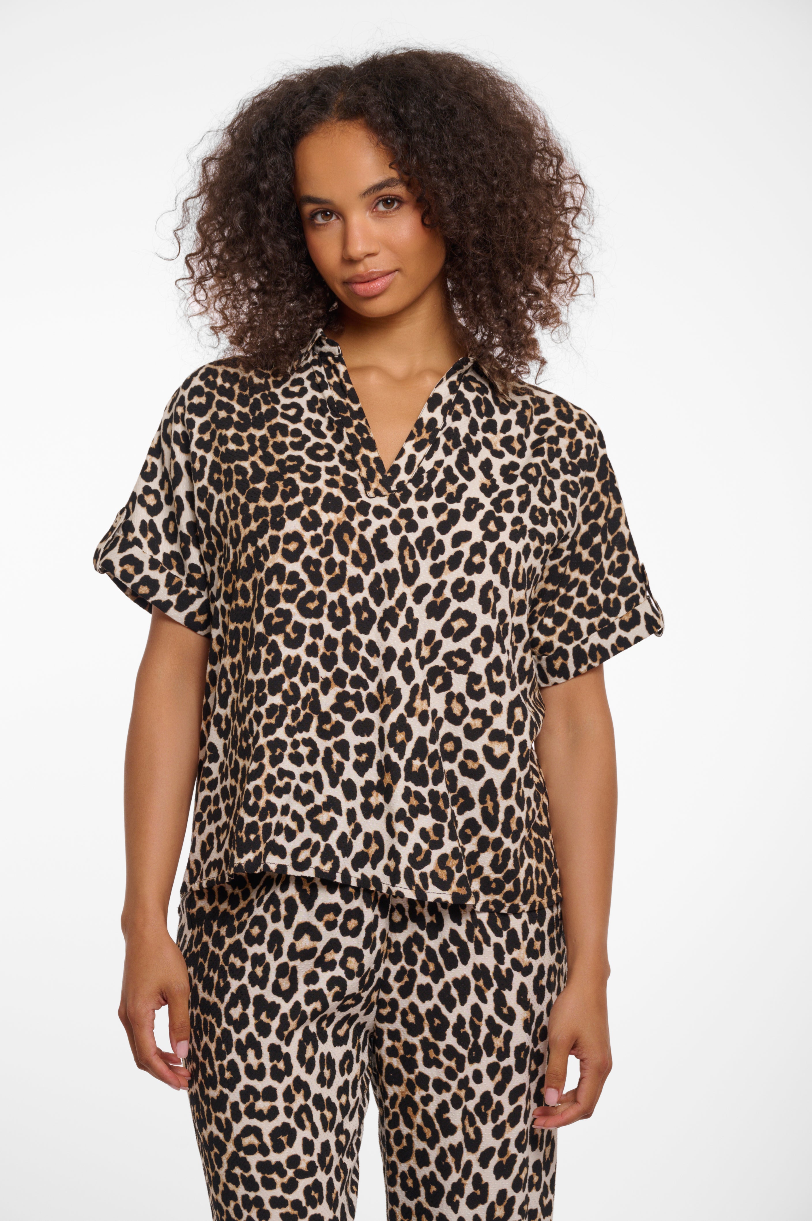 Embrace your wild side with this leopard print blouse from Rino and Pelle. With matching trousers in the same beautiful fabric, this blouse is sophisticated but totally comfortable, perfect for jet setting somewhere warm.