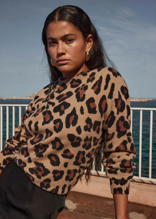 Wear the pattern of the season with ease with this cashmere sweater from Sud Express. In a classic round neckline style with long sleeves and ribbed finishes, this simple sweater makes a wild statement. Simply pair with dark indigo jeans to complete the look.