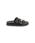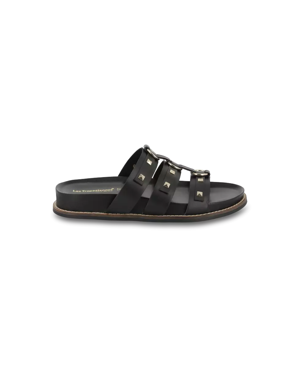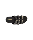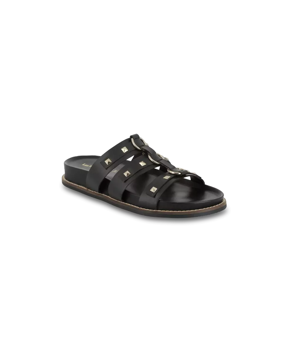 A simple slide on sandal makes summer dressing easy, and these gladiator inspired kicks bring style to this classic design. The wide studded straps and soft leather insole keep these shoes comfortable for all day wear.