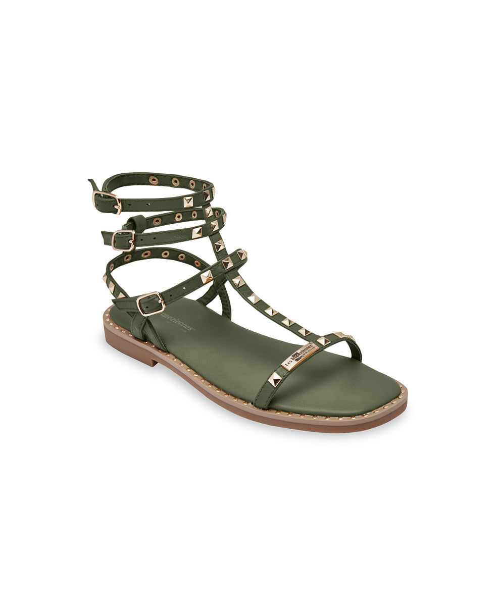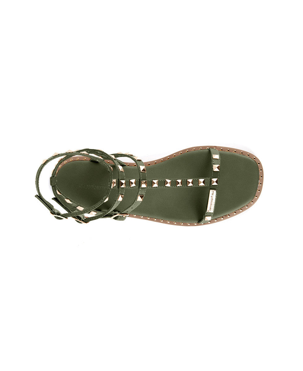 Step into summer with the Coralie Sandal. These Khaki flats are perfect for strolling in the sun, adorned with trendy studs and strappy details. So slip them on, adjust to a perfect fit, and add fun to your summer wardrobe!