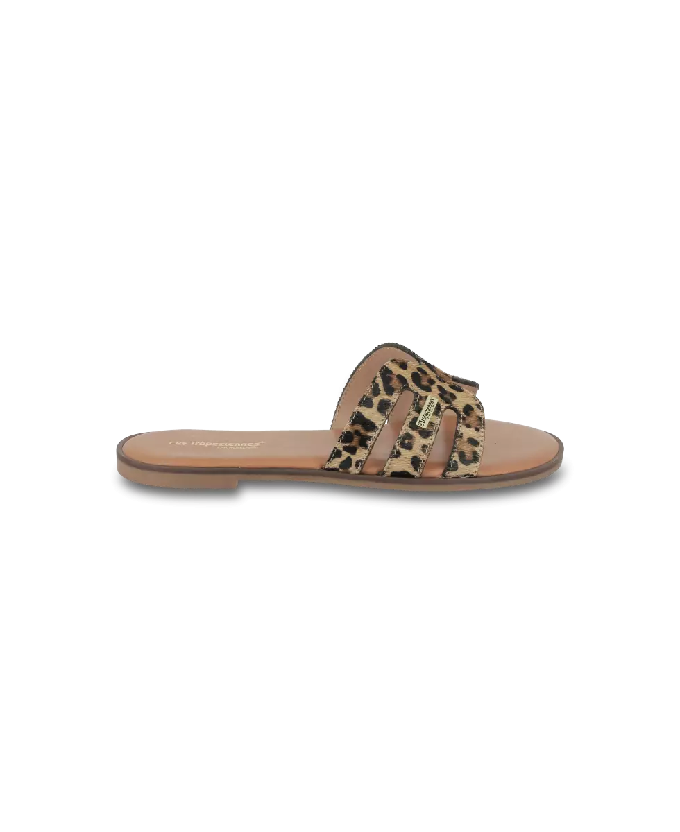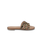 This sandal is a classic, a simple slide on style with a beautifully soft leather and comfortable foot straps. In this year's must have pattern, the leopard print design brings some trendy flair to these timeless sandals.