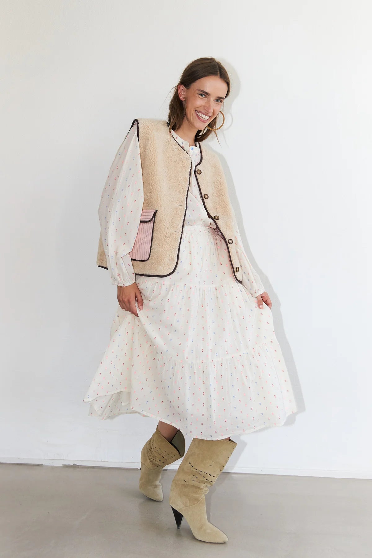 The Morning skirt from Lollys Laundry is a light and feminine midi skirt with a soft drape and fine textured details in the fabric. The skirt is designed in the same material as the HaileyLL shirt and can be styled as an elegant set. The elastic waistband ensures high comfort and a flexible fit, while the layered panels create movement and volume.