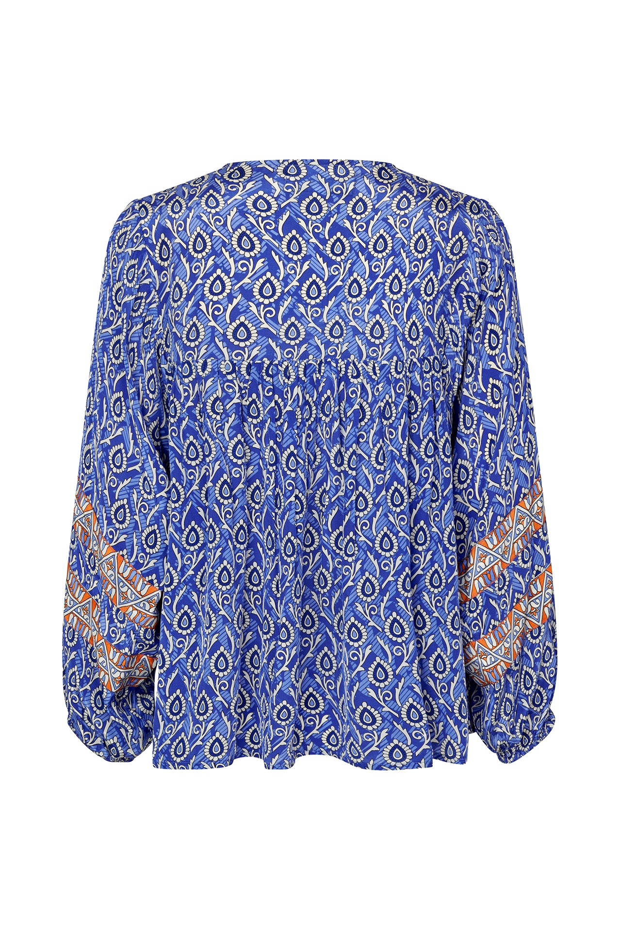 This patterned blouse is full of bohemian charm, perfect for an exotic trip abroad or exploring a new city. With a floaty and relaxed finish, this blouse is breathable and light which is great for the Summer months. Simply pair with white linen trousers or ecru jeans to complete your look.