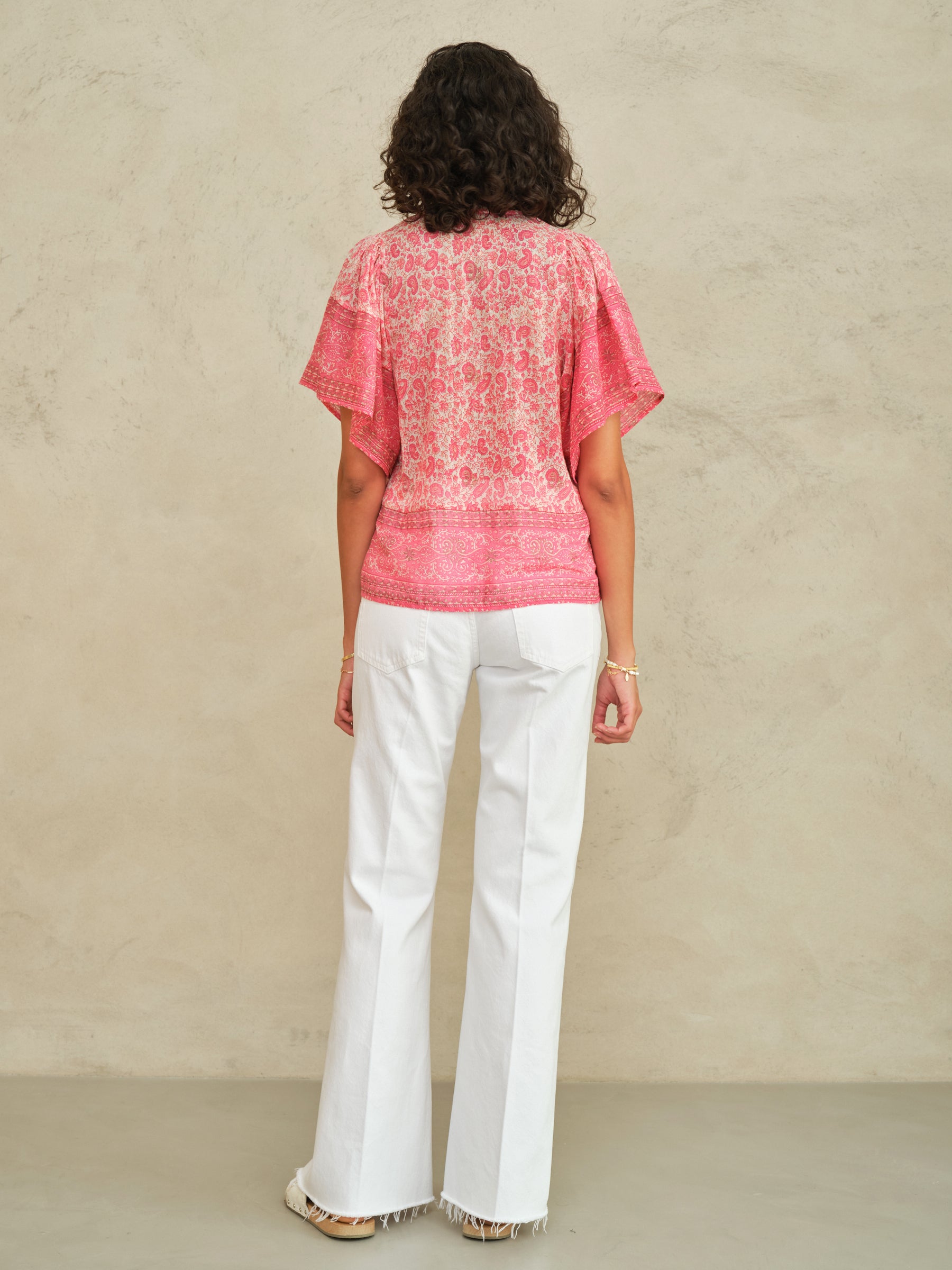 Elevate your everyday wardrobe with the Esti Print Top in Pink. This charming piece features delicate border designs that frame the silhouette beautifully, creating visual interest and dimension. The pretty print detailing adds a feminine touch perfect for casual outings or layered styling. Crafted for comfort and versatility, this top pairs effortlessly with jeans, skirts, or tailored trousers for a polished look that transitions seamlessly from day to evening