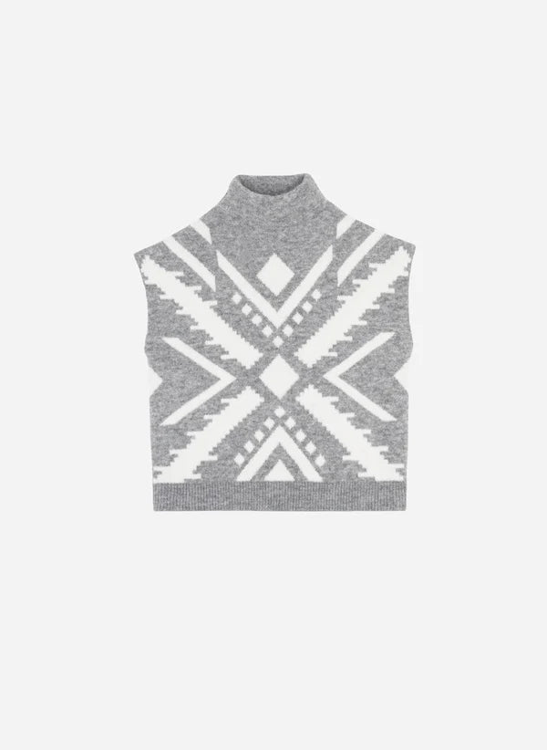 Channel coSy mountain vibes with this alpine-inspired sweater vest. Featuring a high neck and ribbed finishes, it’s designed for easy layering over shirts, blouses, or lightweight knits. The contrasting knitted pattern adds playful, eye-catching detail, while the classic silhouette keeps it chic and versatile. Perfect for adding a touch of fun and warmth to your layered autumn and winter looks.