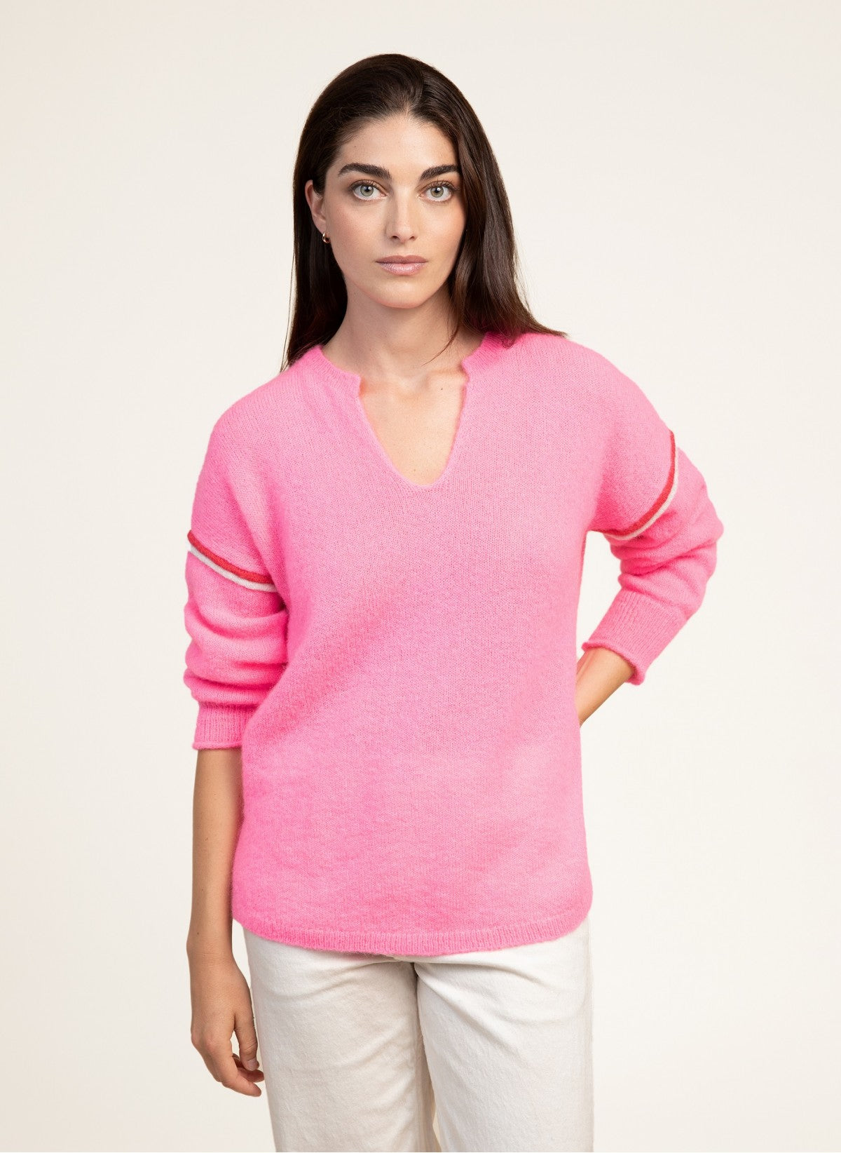This simple knit is a wardrobe must have, easy to style and always in fashion. With long sleeves featuring a striped detail, this knit is perfect for cooler spring days. We love this knit paired with ecru linen trousers or denim shorts.