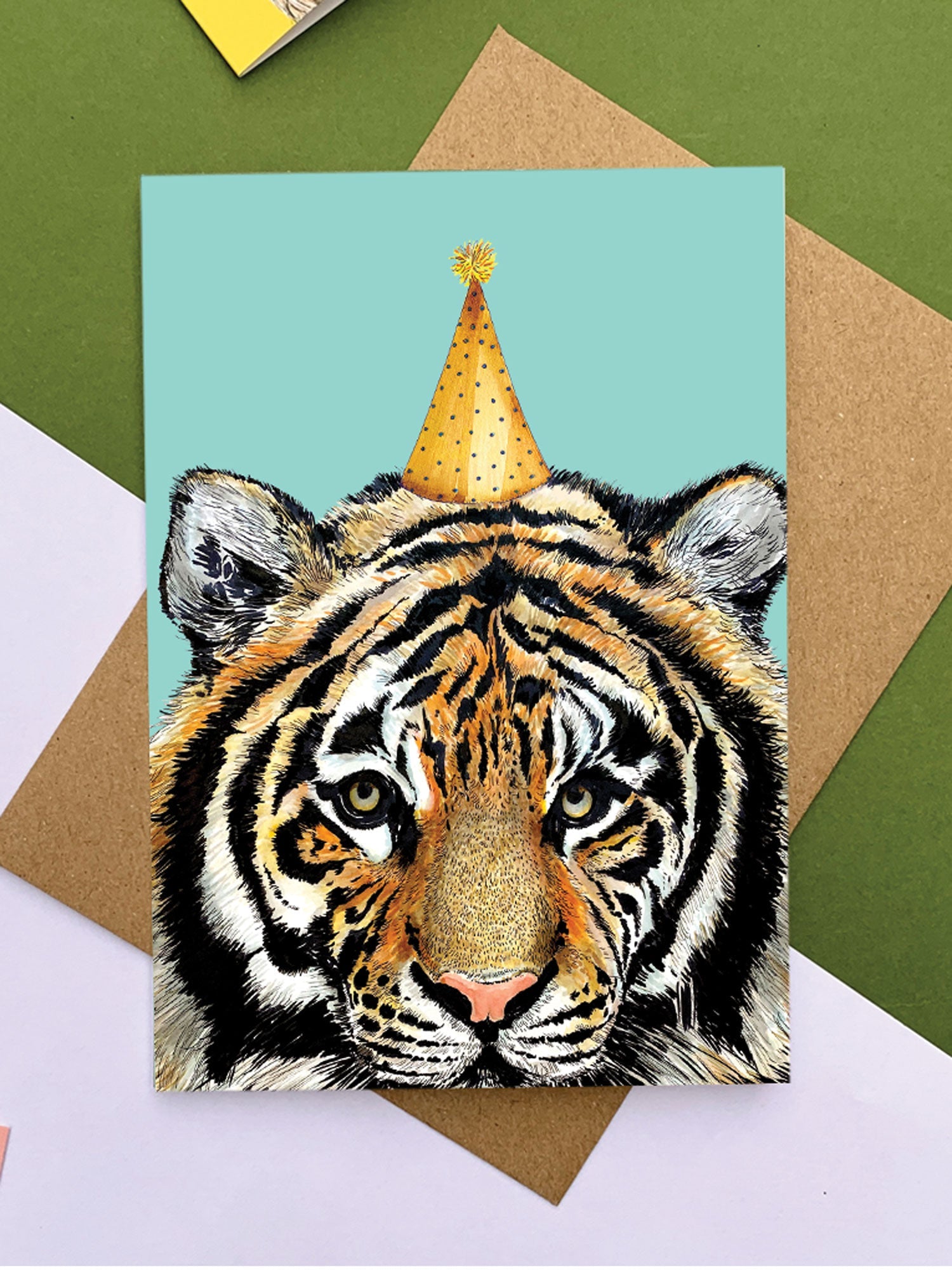 Celebrate with a Roar! This beautiful greetings card features a detailed illustration and are left blank for you to write whatever message you please.