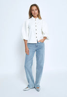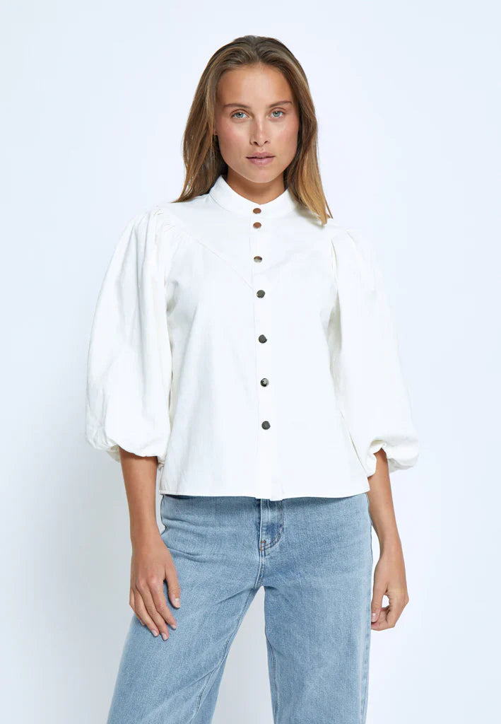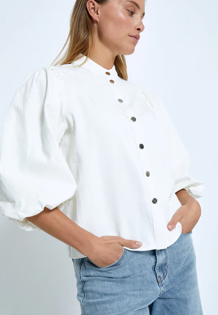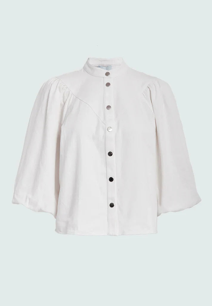 This fun shirt adds some drama to a simple outfit, perfect for those days when jeans and a tee isn't enough. Made from a beautifully crisp cotton, this shirt has puffed sleeves and a front button placket to bring some extra style to your look.