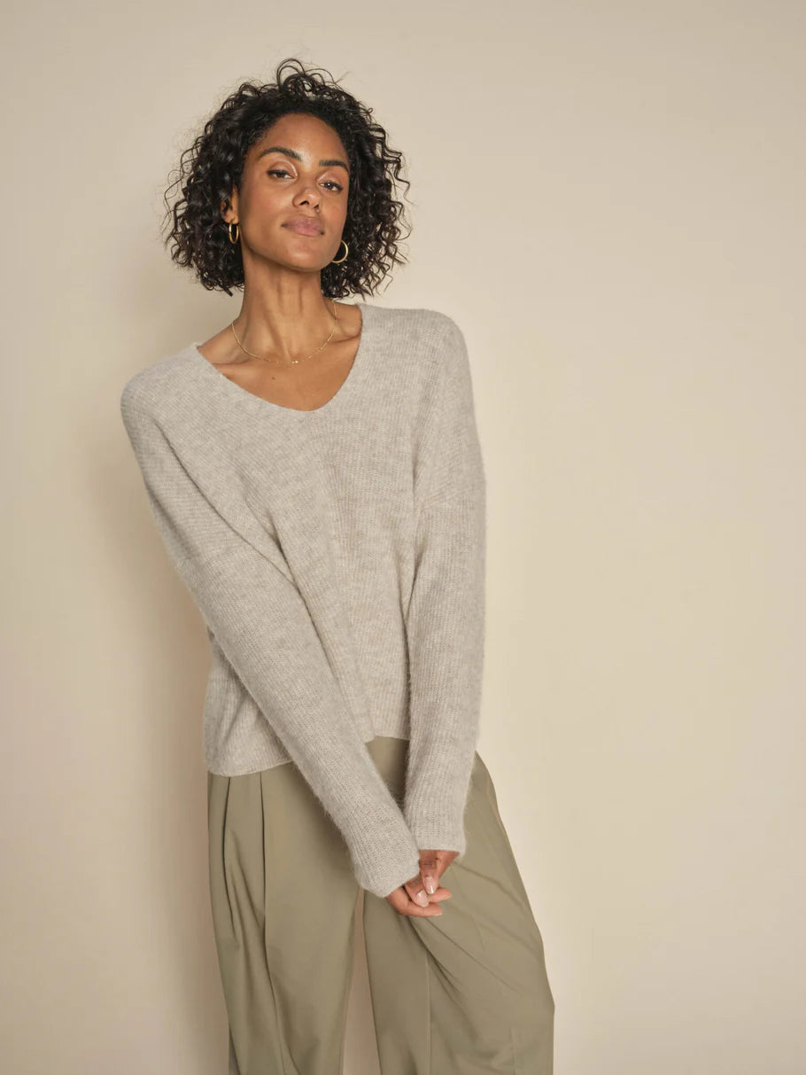 Thora V-Neck Knit - Feather Grey