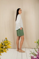 A feminine shirt in a supersoft organic cotton cambric in a delicate clover print.