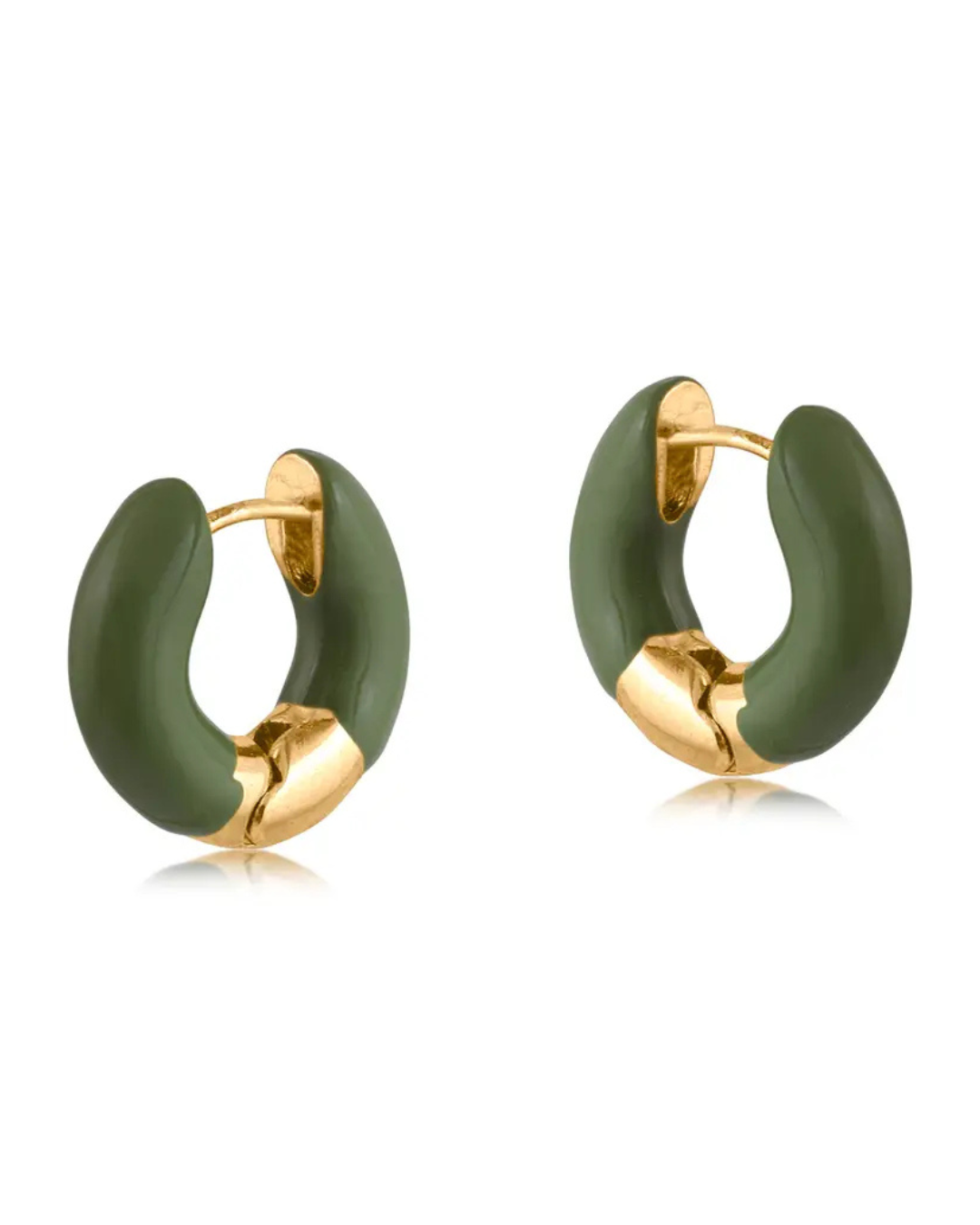 Add a pop of personality with these chunky huggie hoops, designed with glossy enamelled details for a modern twist on a classic. Their bold yet compact shape makes them perfect for everyday wear, while the secure click clasp ensures easy fastening and all-day comfort. A playful upgrade to your hoop collection.