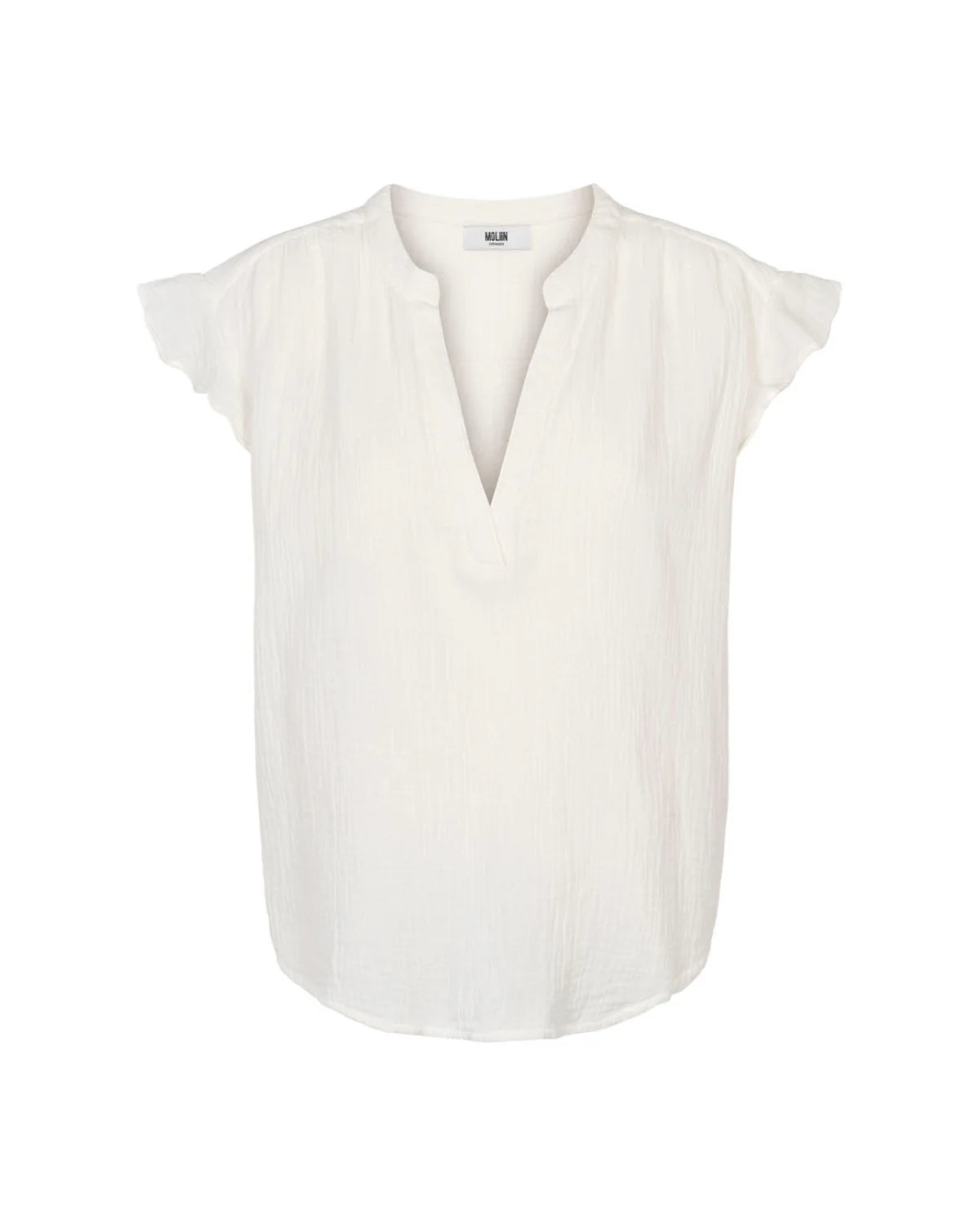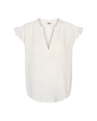 Adrianna shirt is a light and airy sleeveless top crafted in soft waffle cotton. It features a feminine V-shaped slit at the neckline and subtle ruffles along the armholes that add a romantic touch. Gentle gathers at the shoulders create a soft, relaxed silhouette. A versatile everyday style that works perfectly on its own or paired with the Bailey skirt for a complete set.