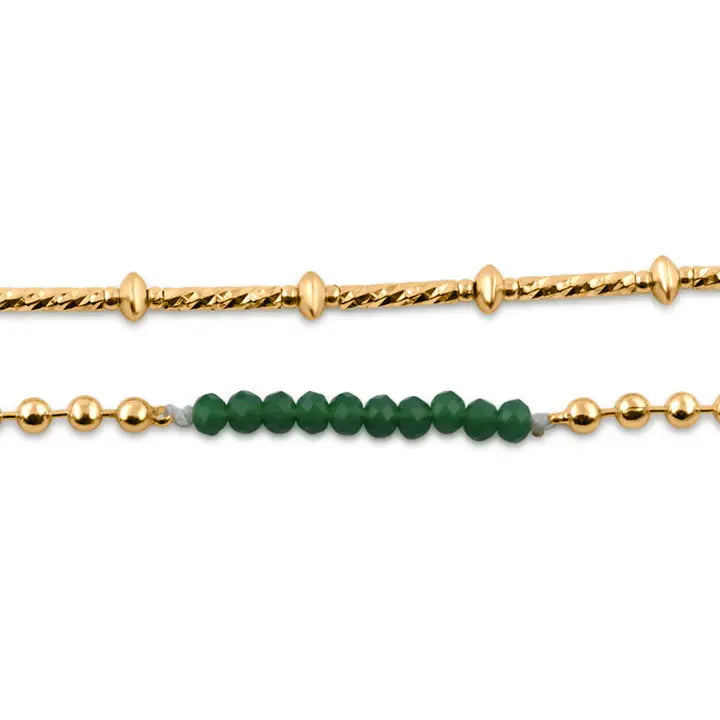 Elevate your wrist game with this set of two chain bracelets. One bracelet features vibrant, colourful glass stones for a playful pop of personality, while the other is a sleek, plain gold chain for a timeless touch. Wear them together for a layered, fashion-forward look or style them separately for versatile everyday elegance. Perfect for adding sparkle and sophistication to any outfit.