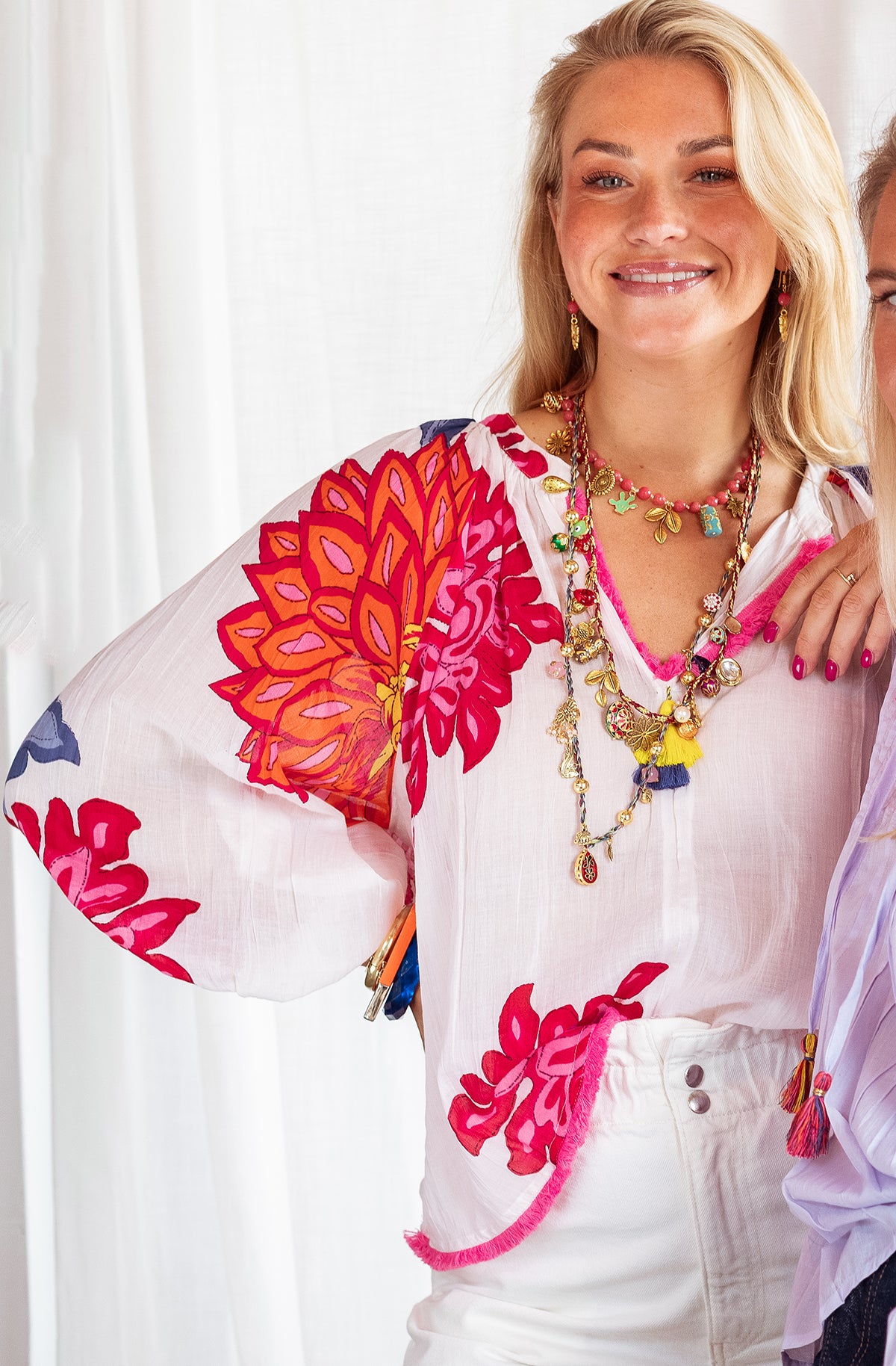 Effortless summer style meets timeless elegance with this Big Flower Blouse. Bold botanical print brings movement and personality to your wardrobe, while the cool, breathable fabric keeps you comfortable through warm days. Long sleeves offer versatile layering—wear them rolled for a relaxed vibe or styled down for polished occasions. Perfect for garden parties, casual brunches, or elevated everyday wear