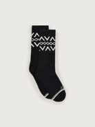 The Varley Chadwick Sock in Black/Egret offers a blend of Alpine charm and ultimate comfort. Crafted from a super-soft knit, this cozy accessory features a traditional Fairisle pattern and is finished with the subtle Varley logo on the toe. Perfect for luxury lounging or styling with winter boots.