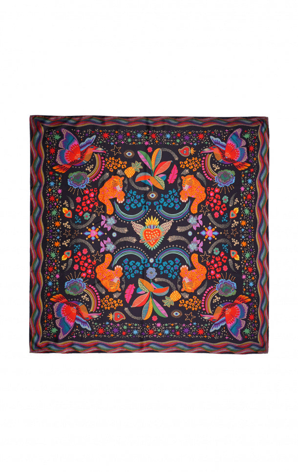 This funky handmade scarf is a beautiful accessory to elevate any look. Tie around your neck, in your hair or attach to a bag and bring a vibrant pop of playful print to your day.