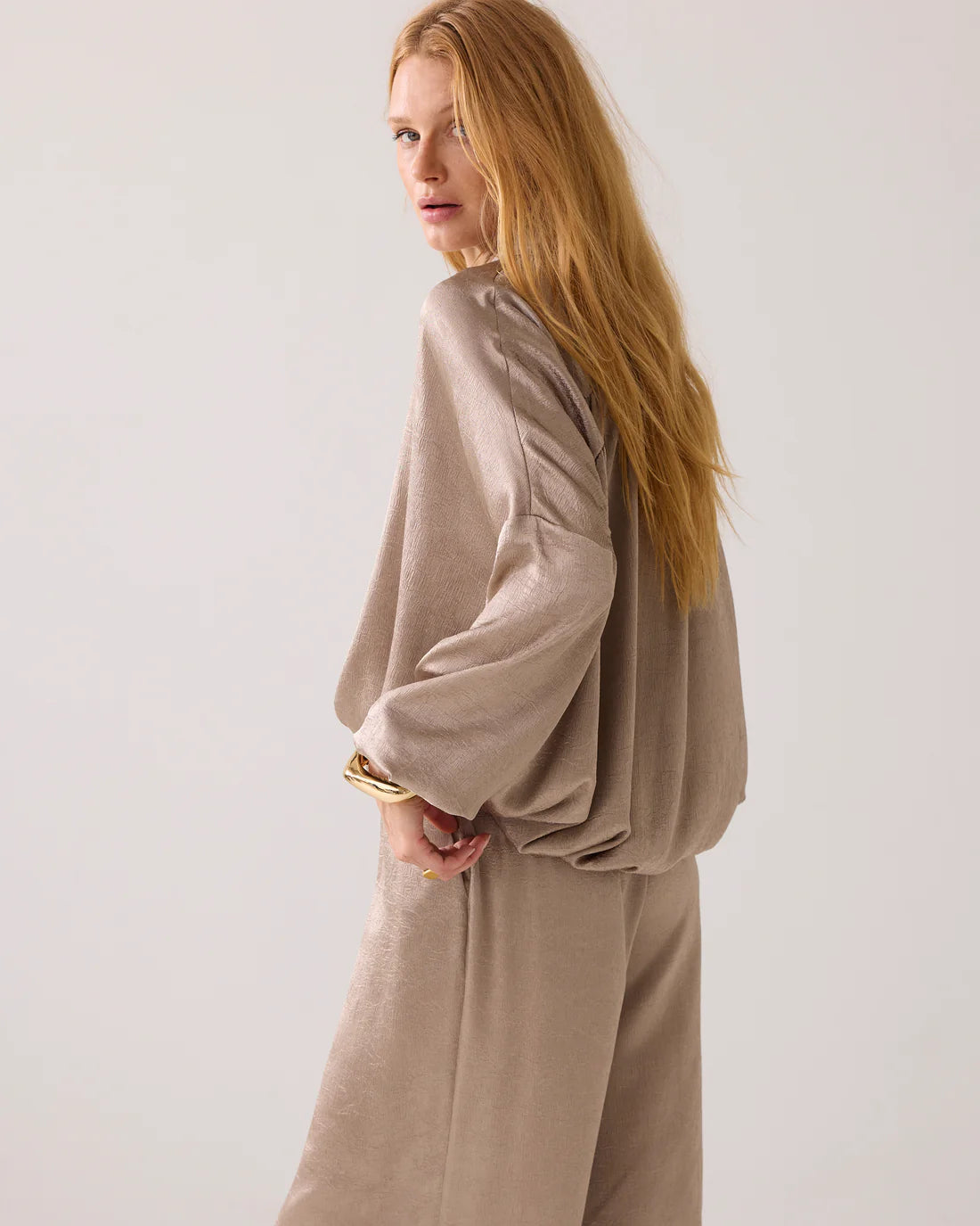 Effortlessly casual but instantly impactful, this beautiful women's blouse brings shimmer to any look. With pleated details at the back and a drawstring hem, the design of this blouse creates a mesmerising movement that can be totally customised to match whatever the occasion.