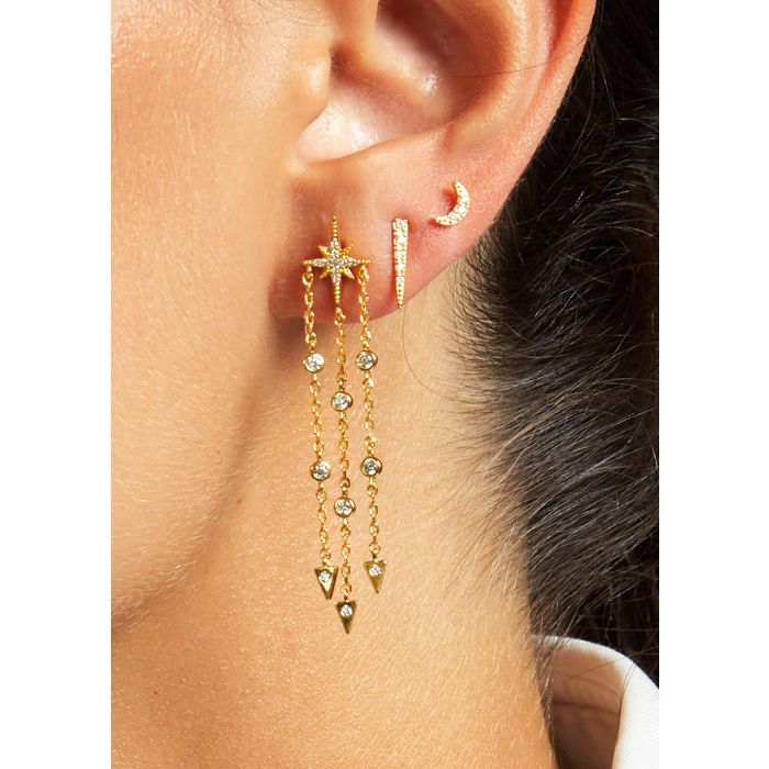Make a real statement with these earrings. Inspired by the Diwali festival, these earrings bring glimmers of light with their fine stones and fun movement. Turn heads daily or save for your best occasions.