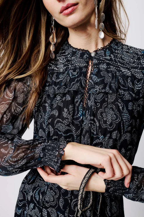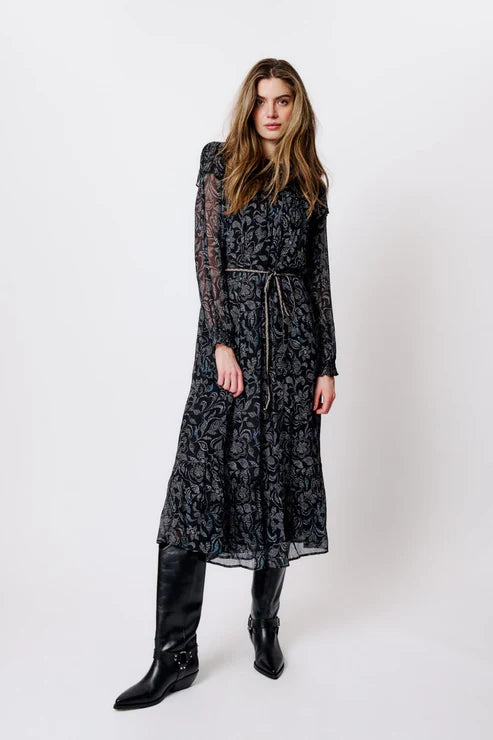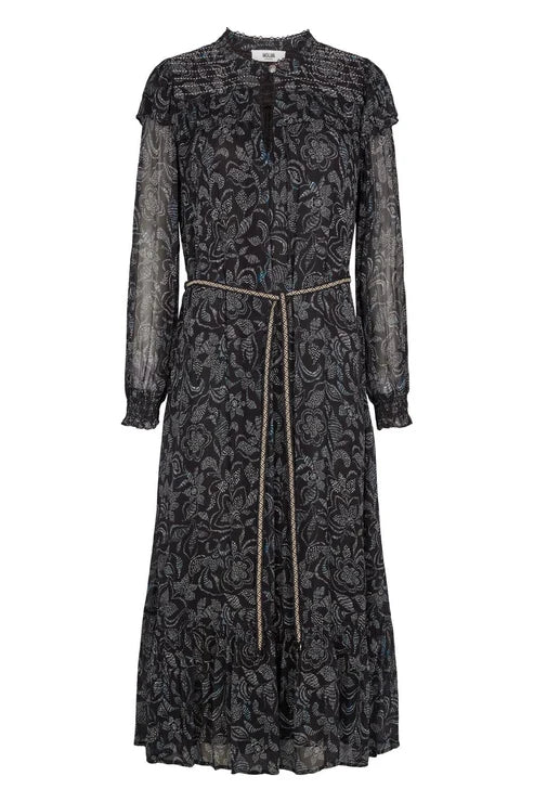 This autumn, elevate your wardrobe with timeless pieces like this maxi dress from Moliin. Easy to style for practically any occasion, this beautiful dress is feminine, but subtle for those who like effortless style. The round neckline and delicate button closure keep the shape of this timeless, sleek and elegant, but the bohemian inspired belt brings a playful twist as a finishing touch. The styling possibilities with this dress are endless.