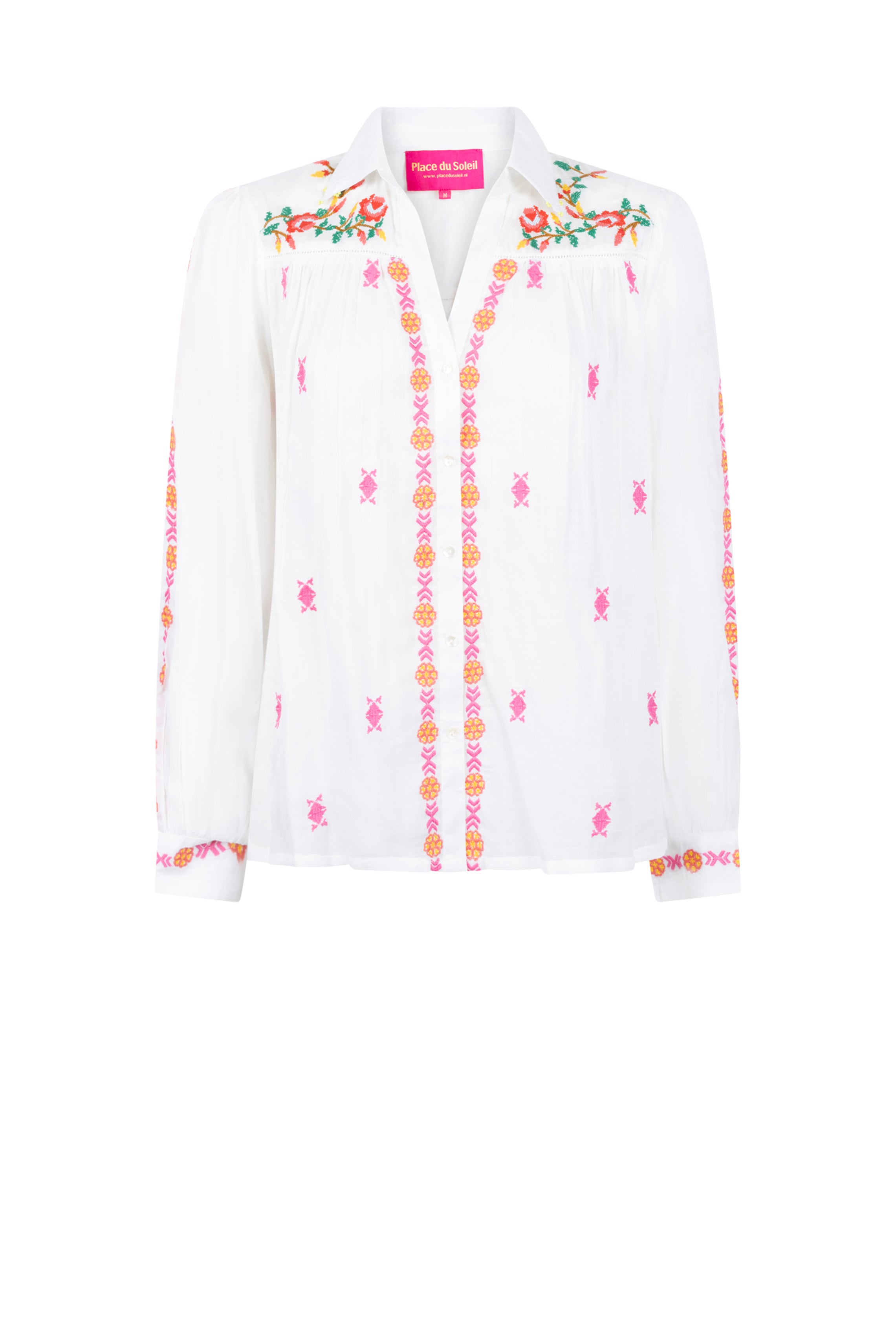 Effortless elegance meets artisanal craftsmanship in this lightweight blouse. Delicate ikat embroidery adorns the fabric, creating a pretty, intricate pattern that catches the light beautifully. The airy construction makes it perfect for layering or wearing solo, offering comfort without compromising on style. A versatile piece that transitions seamlessly from day to evening, ideal for those who appreciate understated luxury and thoughtful design details