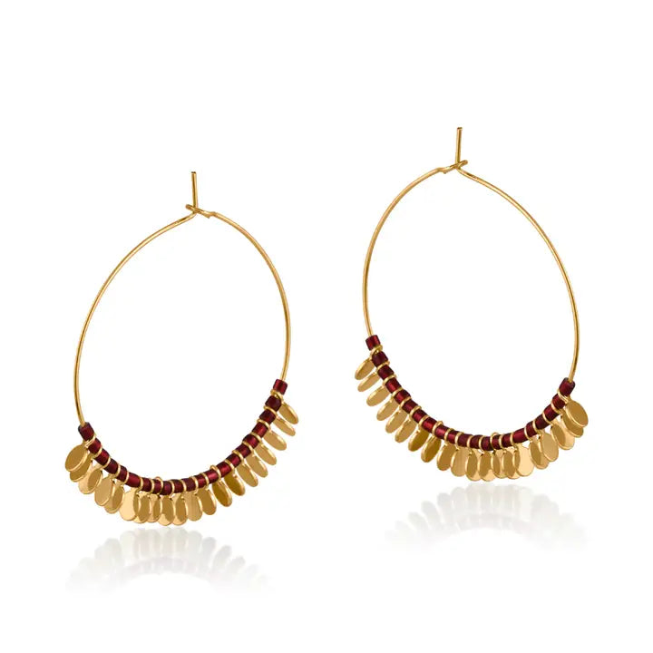 Gergana Beaded Hoop Earrings - Red