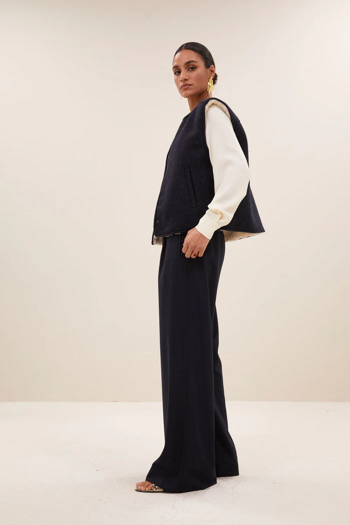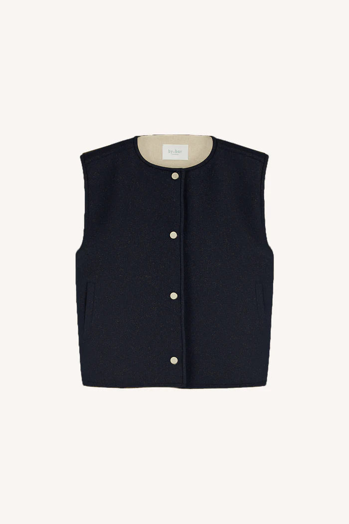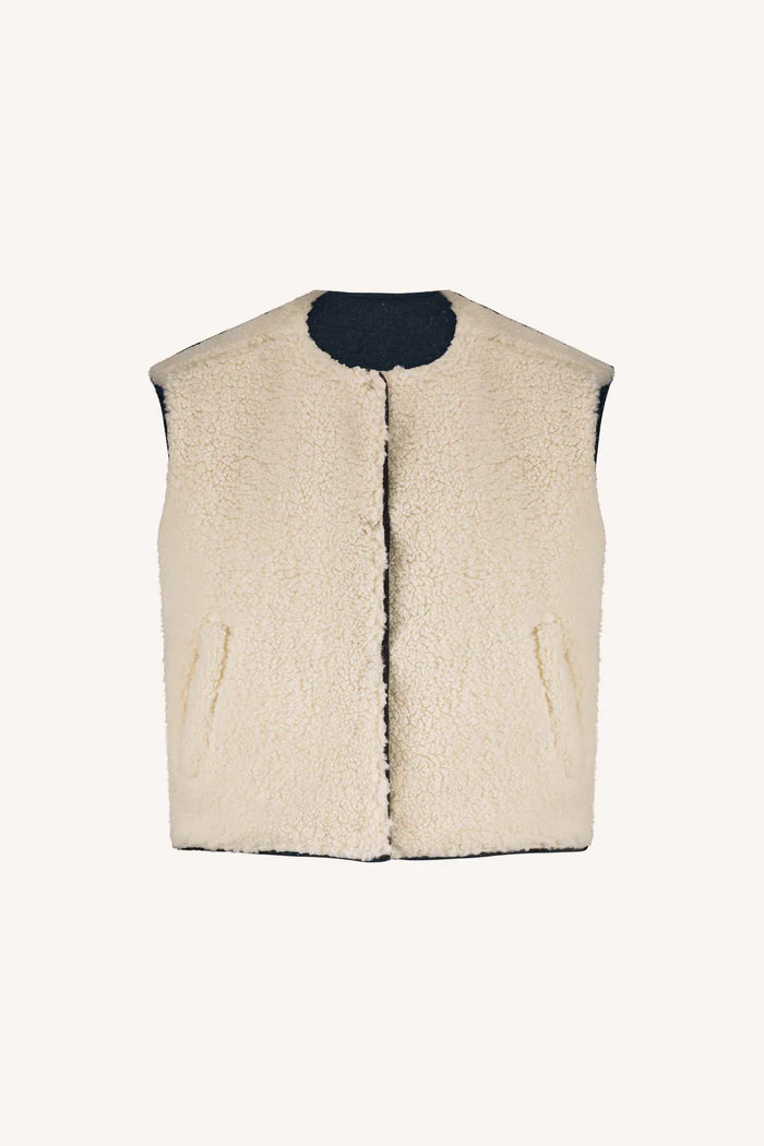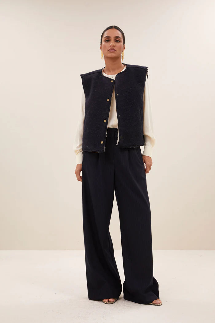 Stay warm and festive this winter with this incredible take on your classic gilet jacket. Reversible for versatility, this jacket features one side with a navy plain colour and delicate gold sparkle finish. The other side has a super soft teddy style, the opportunities are endless.