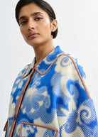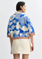 Adorned with a subtle, eye-catching floral pattern reminiscent of psychedelic blooms, this cardigan is crafted from a fine knit for lightweight comfort. Designed for a relaxed fit, it features a button fastening and bold contrast trim for a playful touch. Finished with flap pockets and cropped 3/4 sleeves. Easy to layer, effortless to wear.