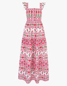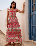 The much-loved Lucia Dress is an effortless addition to your holiday wardrobe. Crafted from a clever mix of hand block-printed fabrics in pretty shades of pink, red and green, it features a fitted body with non-functional buttons down the front, delicate ruffled straps and a statement print-mixed skirt. Finished with a smocked back for a flattering fit, it pairs perfectly with gold sandals for meals out or trainers for easy city exploring. A timeless favourite you’ll wear again and again.