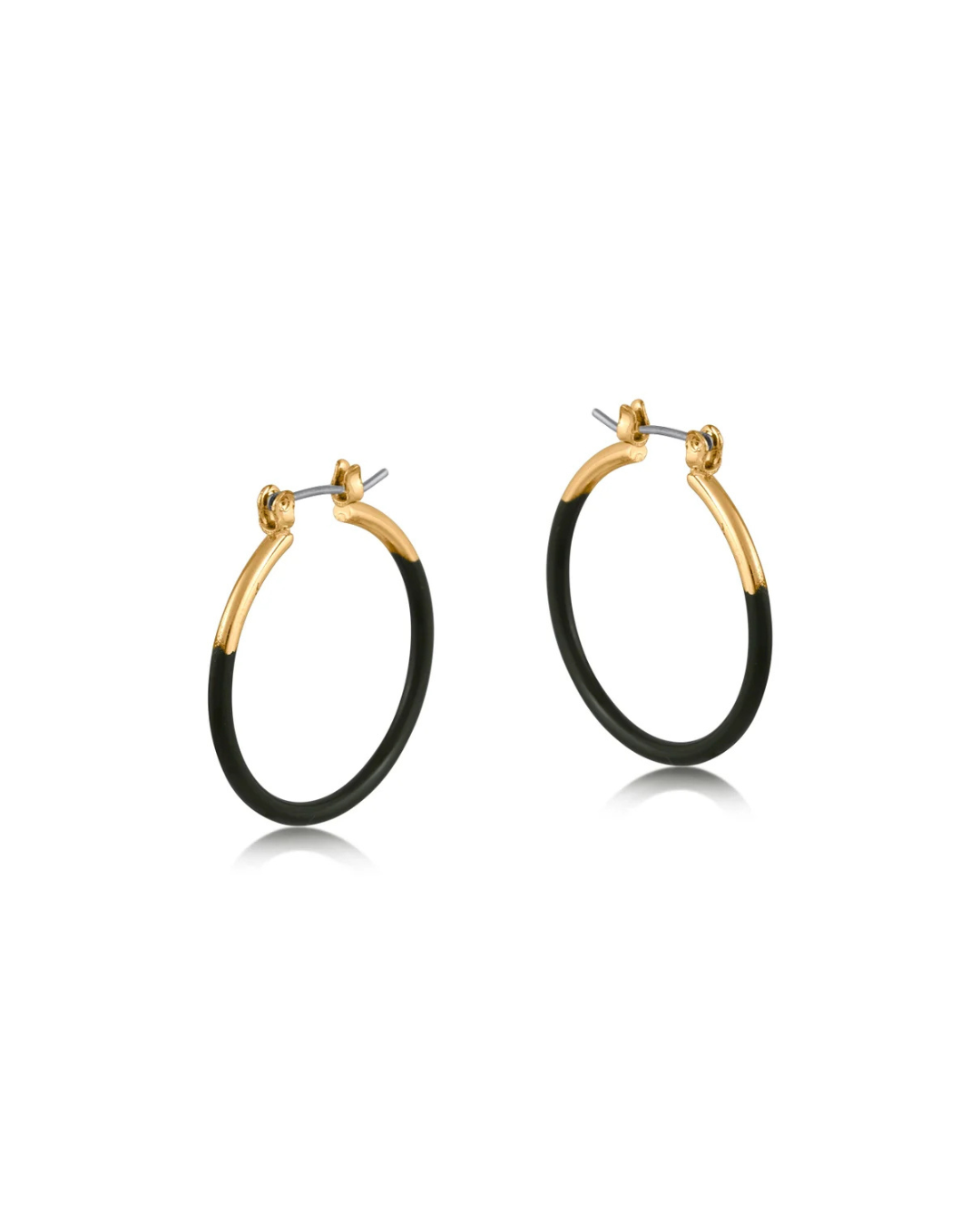 Playful yet polished, these two-toned hoops strike the perfect balance between classic and contemporary. Half shimmering gold and half dipped in vibrant enamel, they bring a pop of colour and personality to any look. Handcrafted from brass and finished with hypoallergenic, nickel-free surgical steel posts, they’re safe for sensitive ears and comfortable for all-day wear. Unique, versatile, and effortlessly chic, these hoops are made to stand out, whether you’re elevating everyday denim or adding a playful twist to evening outfits.