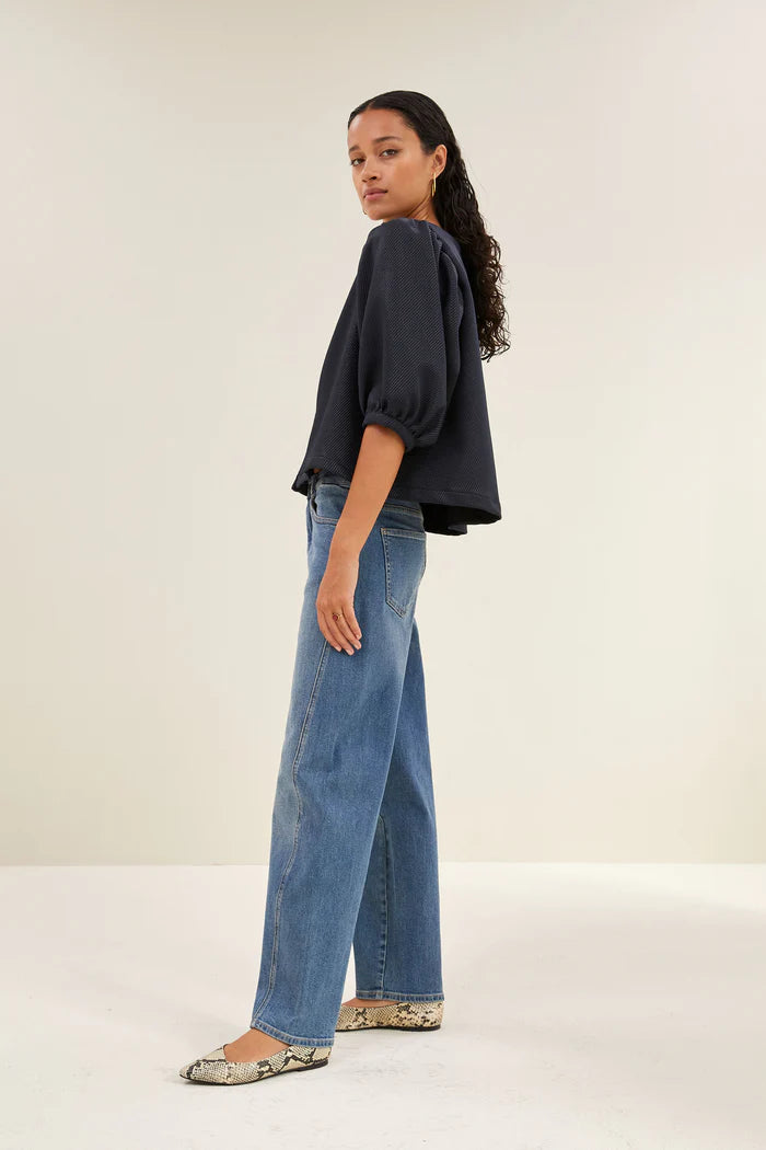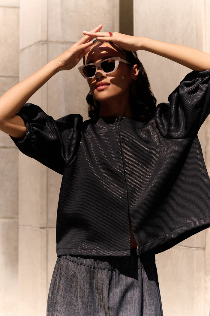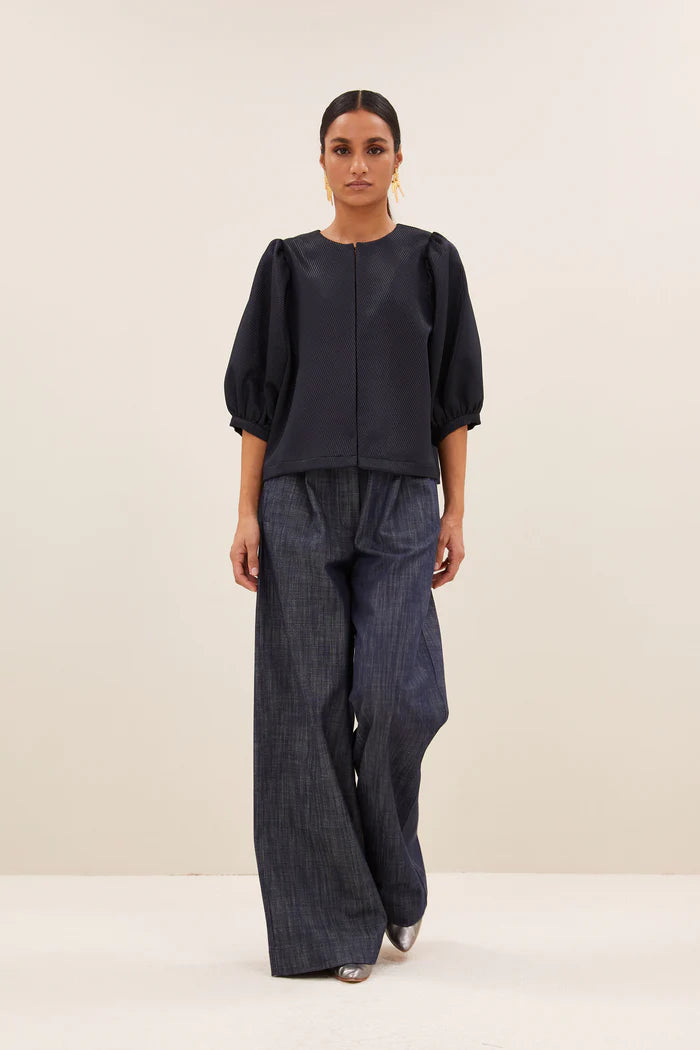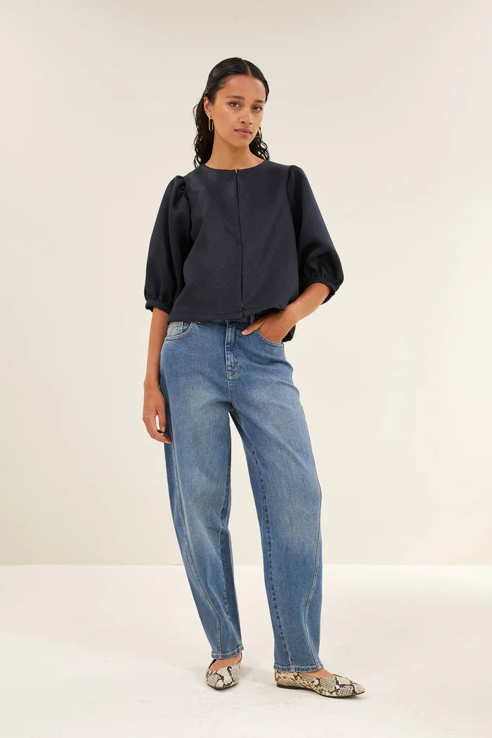 Mauri Gloss Stripe Blouse - Midnight