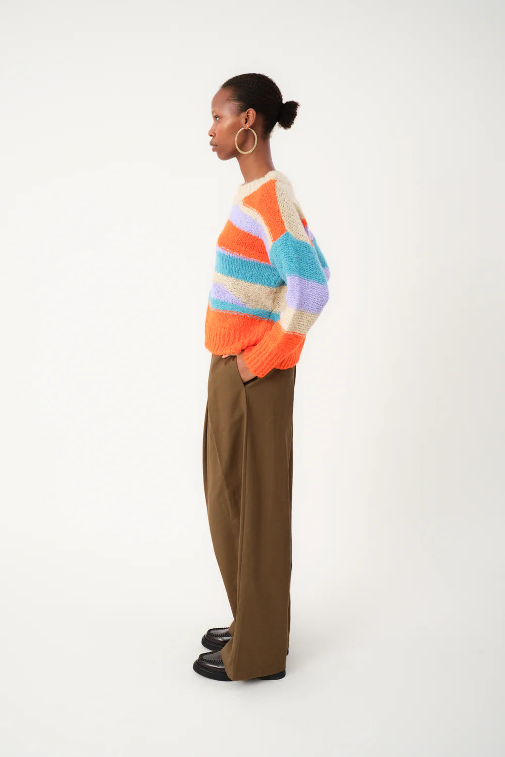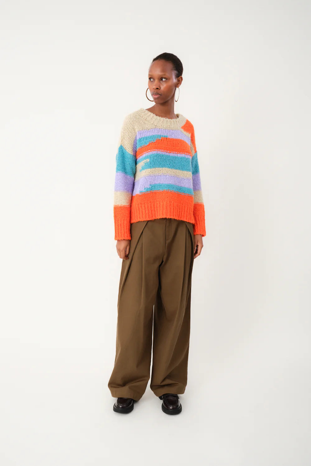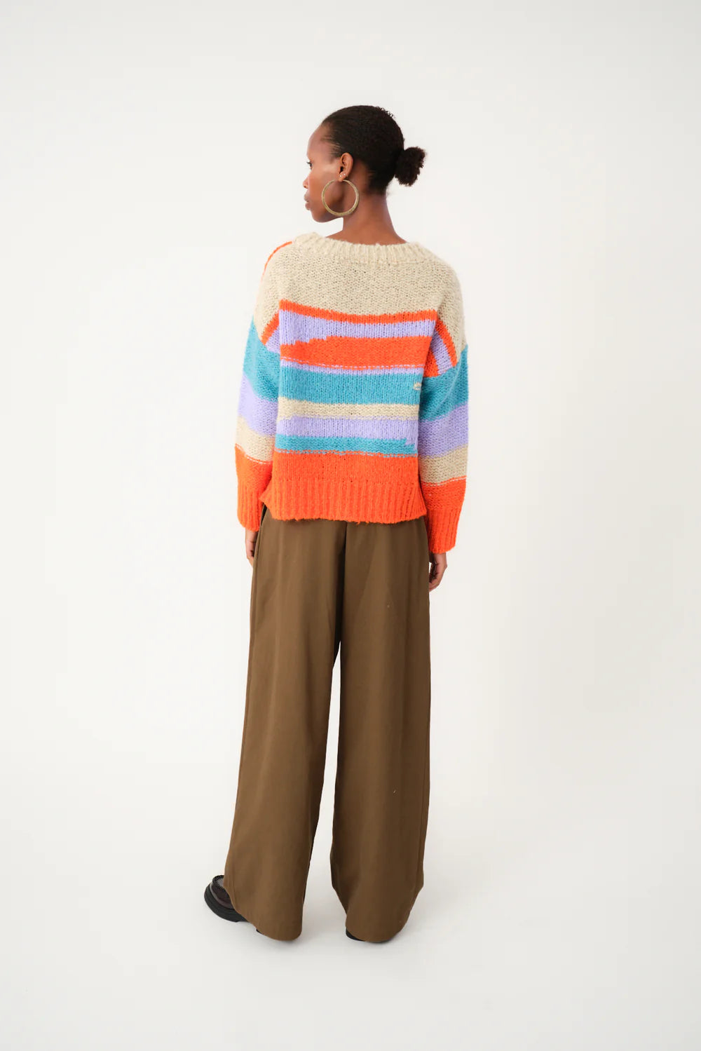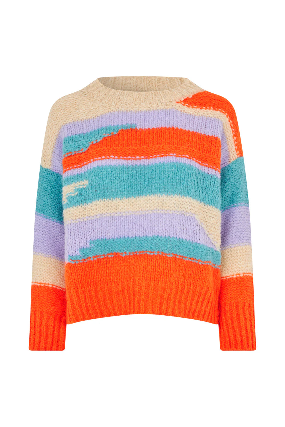 55Bright, bold and full of personality, this knit takes your greyest of winter days and infuses it with Lolly's style. In a chunky textured knit, this jumper is perfect for the coldest weather, simple layer up with your thermals and pair with dark indigo jeans and funky trainers.