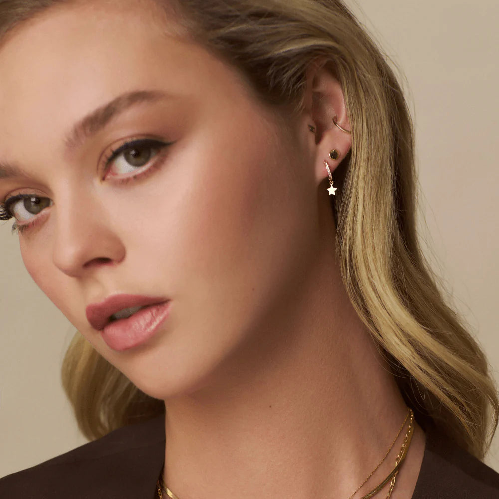 These micro hoops are all you need to bring a little sparkle to your look, with tiny star charms, these hoops are great for stacking.