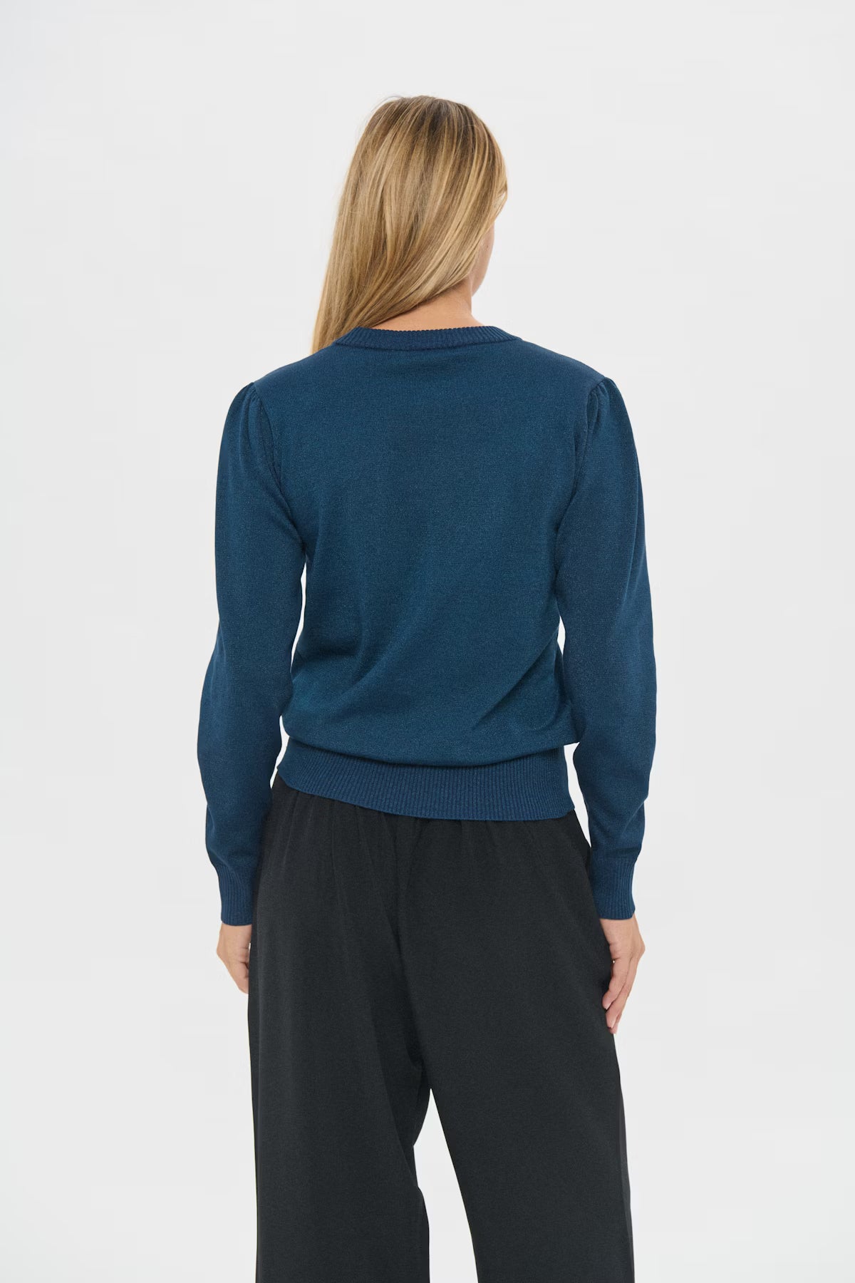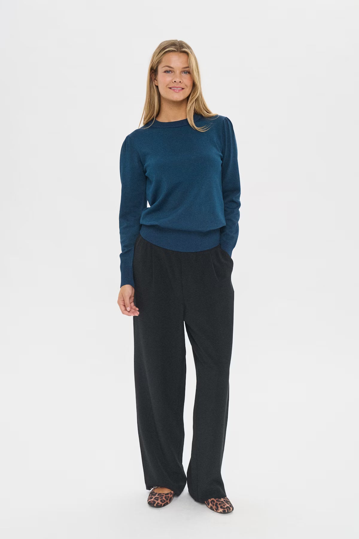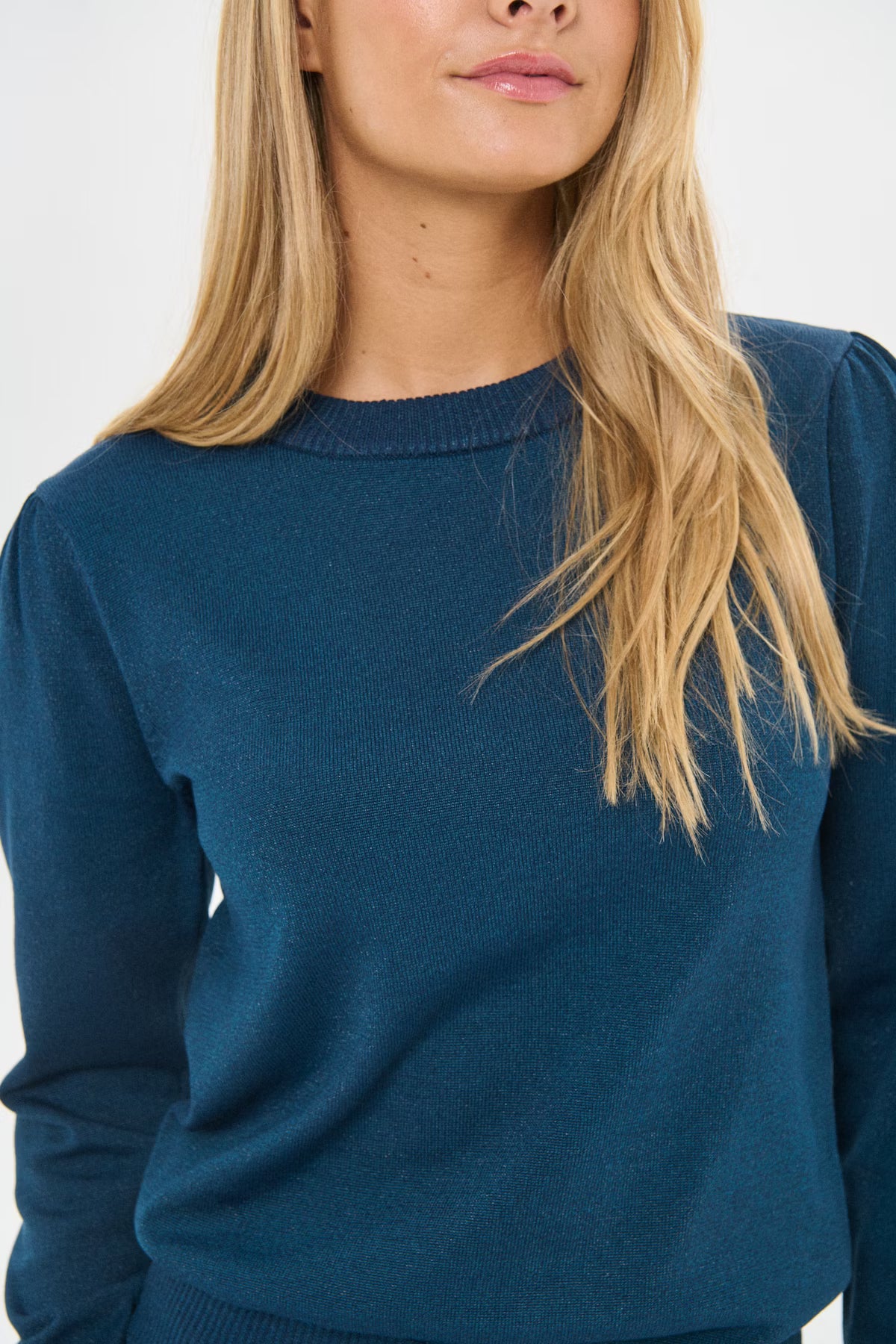 Elegant and versatile, this knitted sweater is a refined take on a classic wardrobe favourite. Designed in a slim to regular fit with long sleeves and a rounded neckline, it offers a flattering silhouette that’s easy to style for any occasion. The slightly puffed shoulders add a touch of soft femininity, while ribbed finishes provide subtle structure and a polished feel.