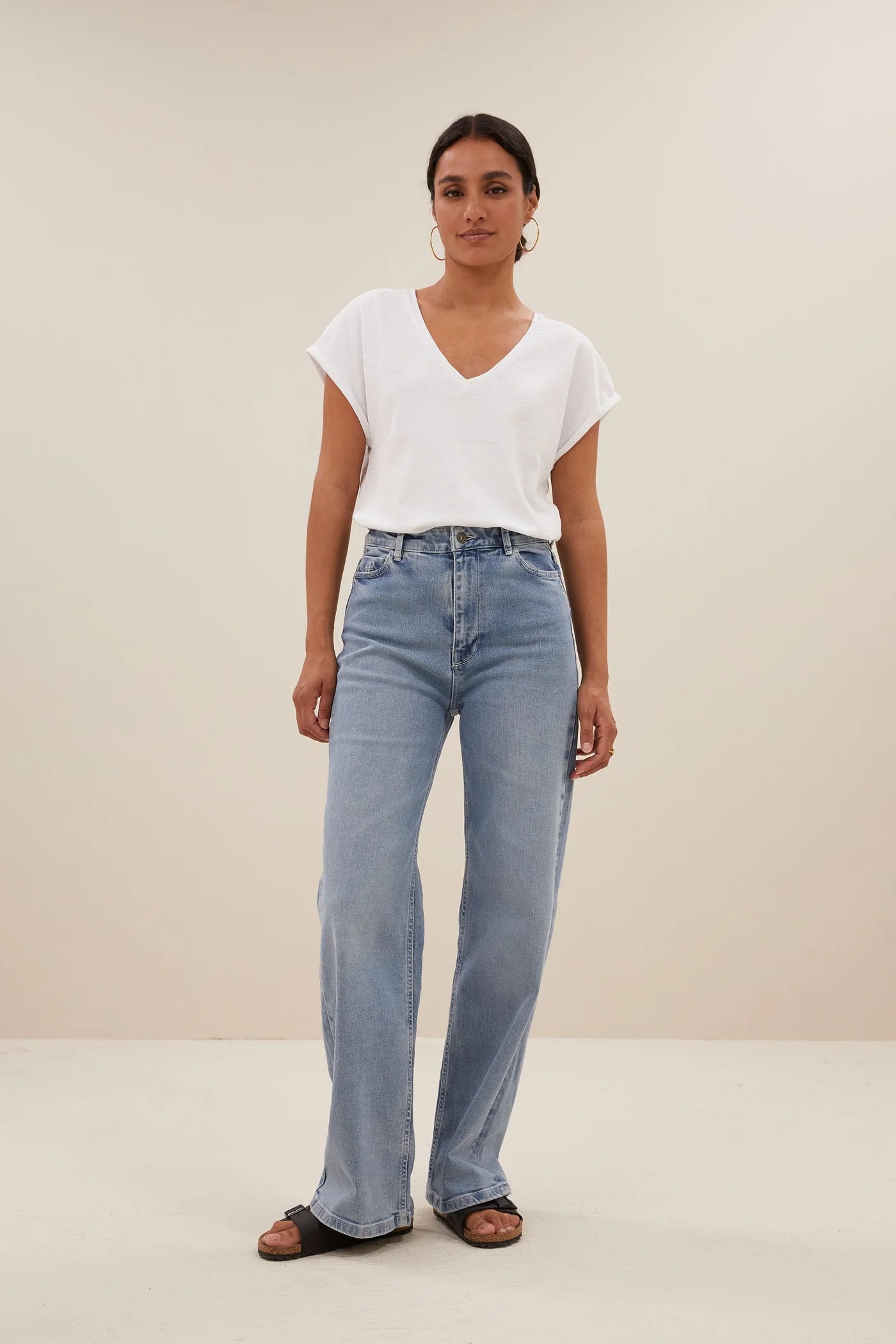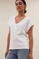 This momi logo top is made from soft, organic cotton and offers a comfortable fit that perfectly suits your style. With a flattering v-neckline and short sleeves, this top is ideal for warm days or a relaxed evening out. Pair it with your favourite lina pants for a casual look. This timeless basic is a must-have in your wardrobe